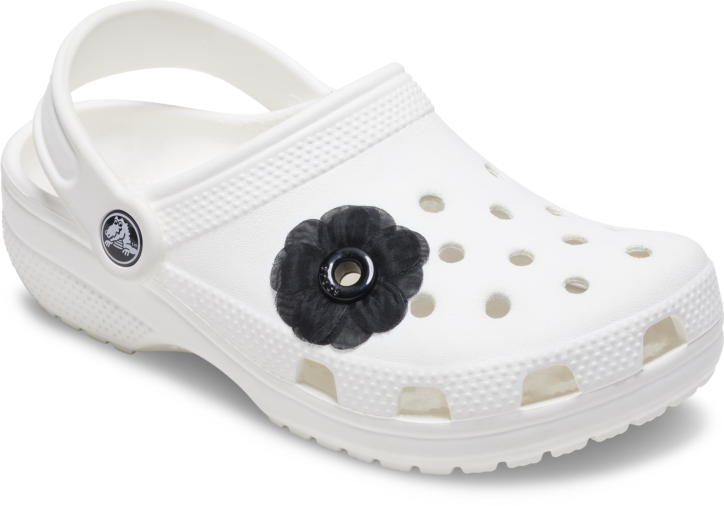 Pop some personality into your shoes with this Black Chiffon Grommet Jibbitz™ charm. It’s the perfect addition to your favorite pairs of clogs, slides, and more.