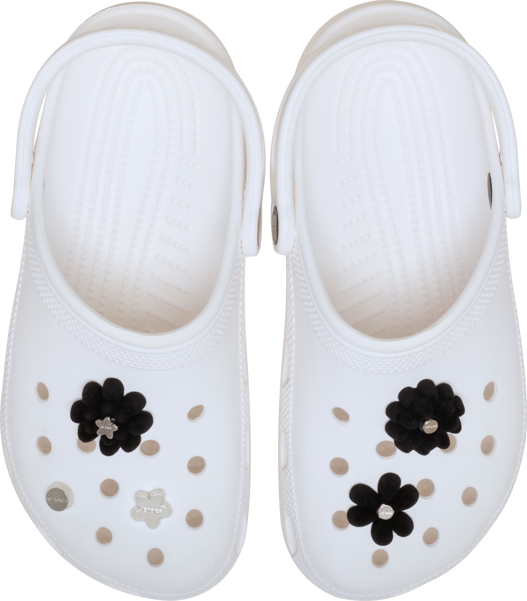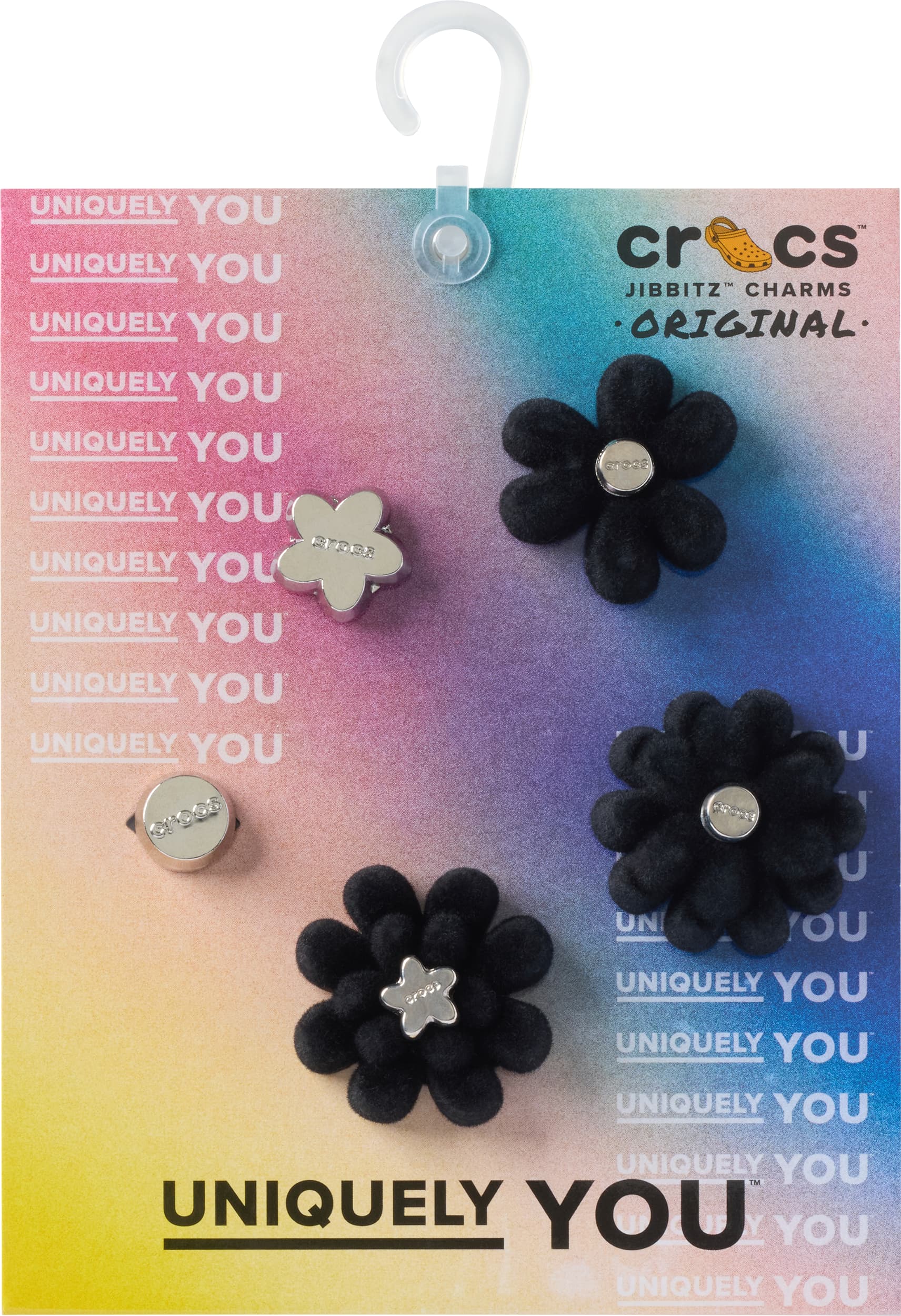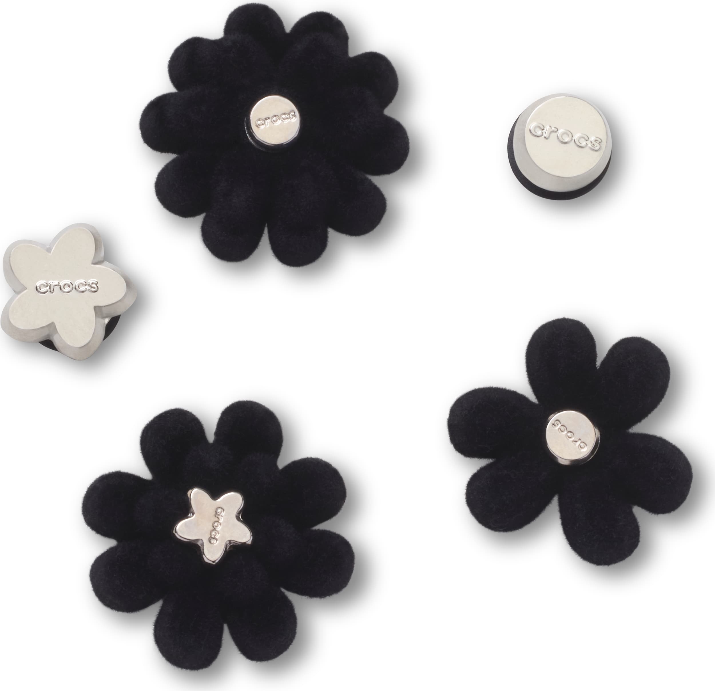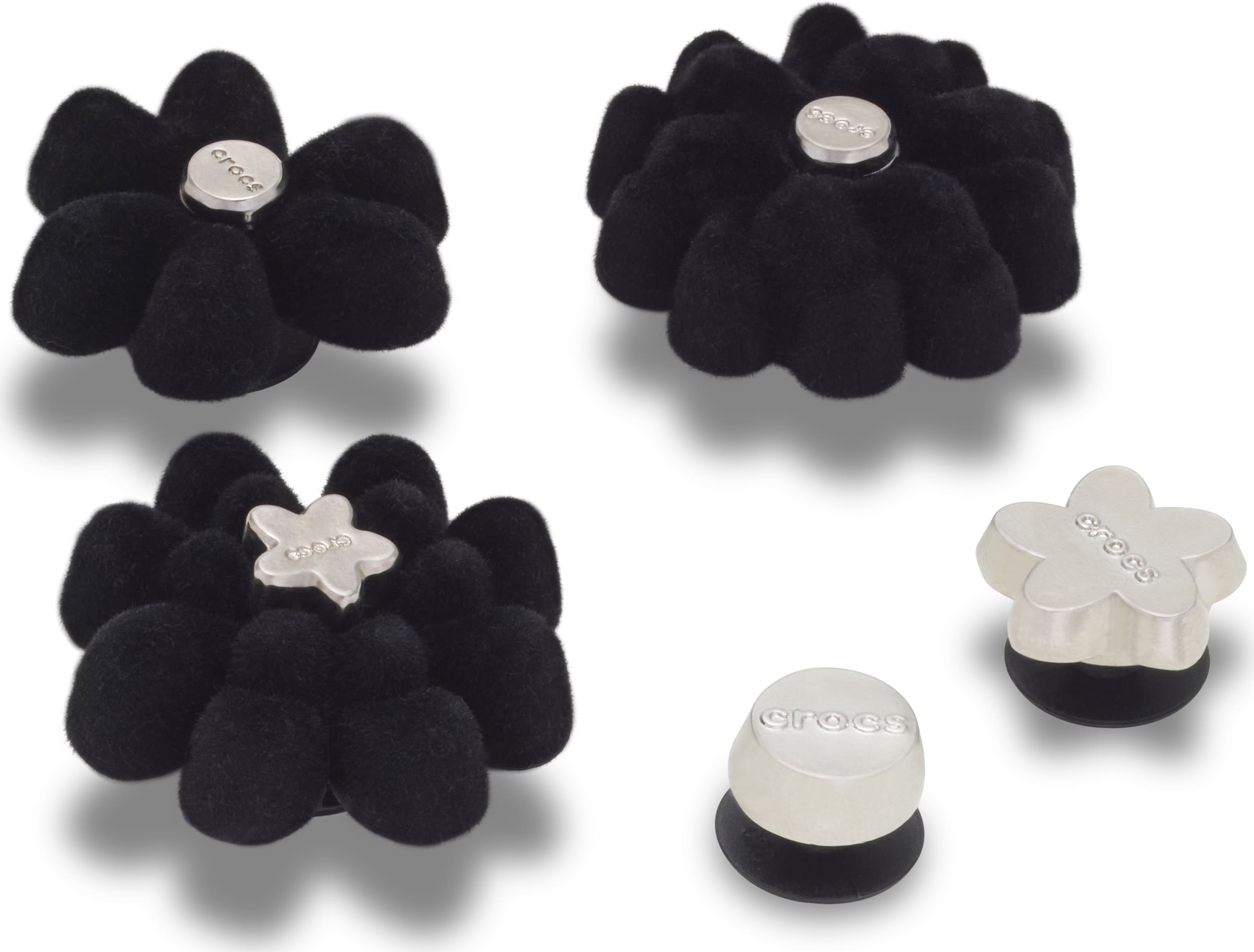 Pop some personality into your shoes with these Black Velvet Flower 5 Pack Jibbitz™ charms. They’re the perfect addition to your favorite pairs of clogs, slides, and more.