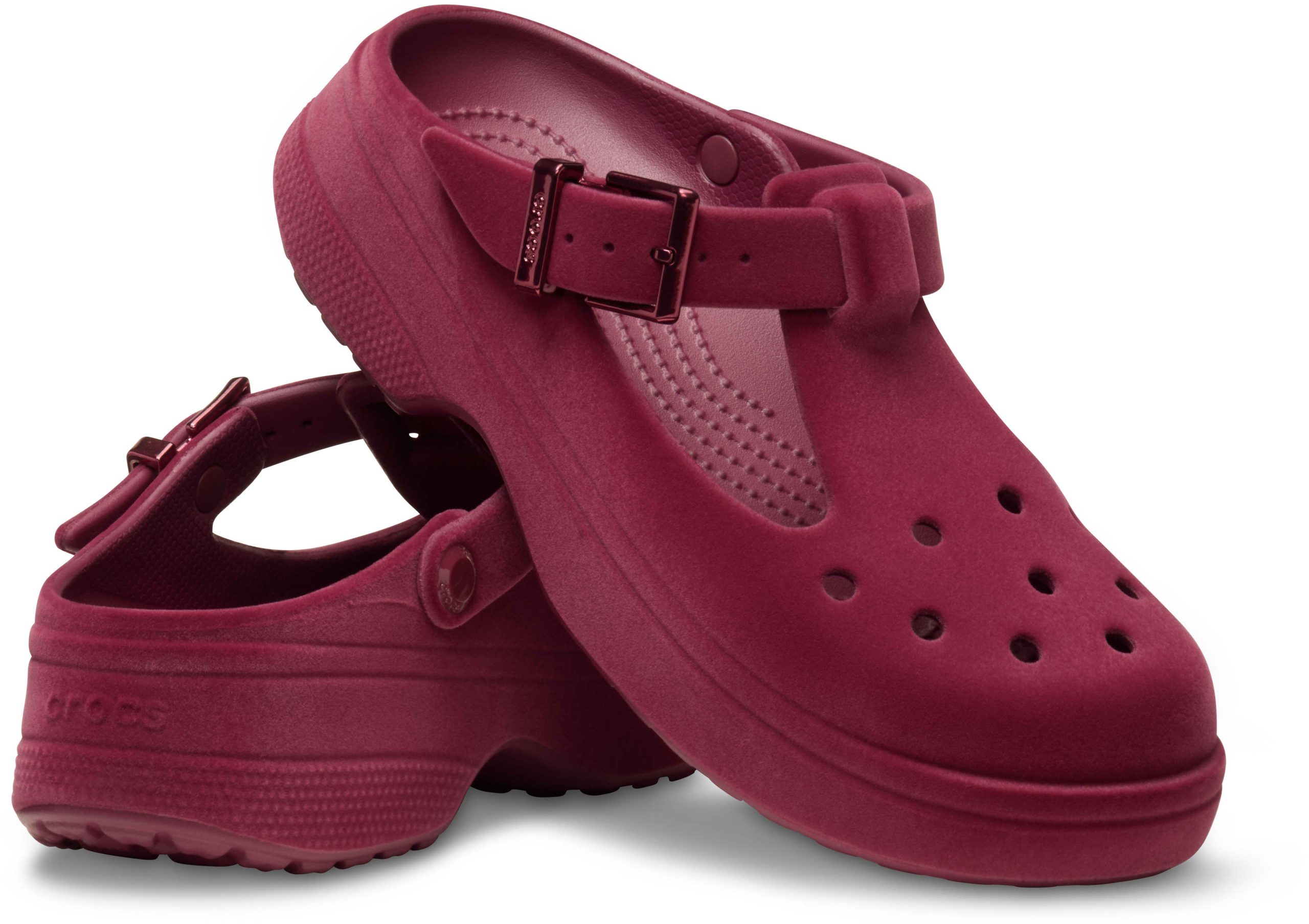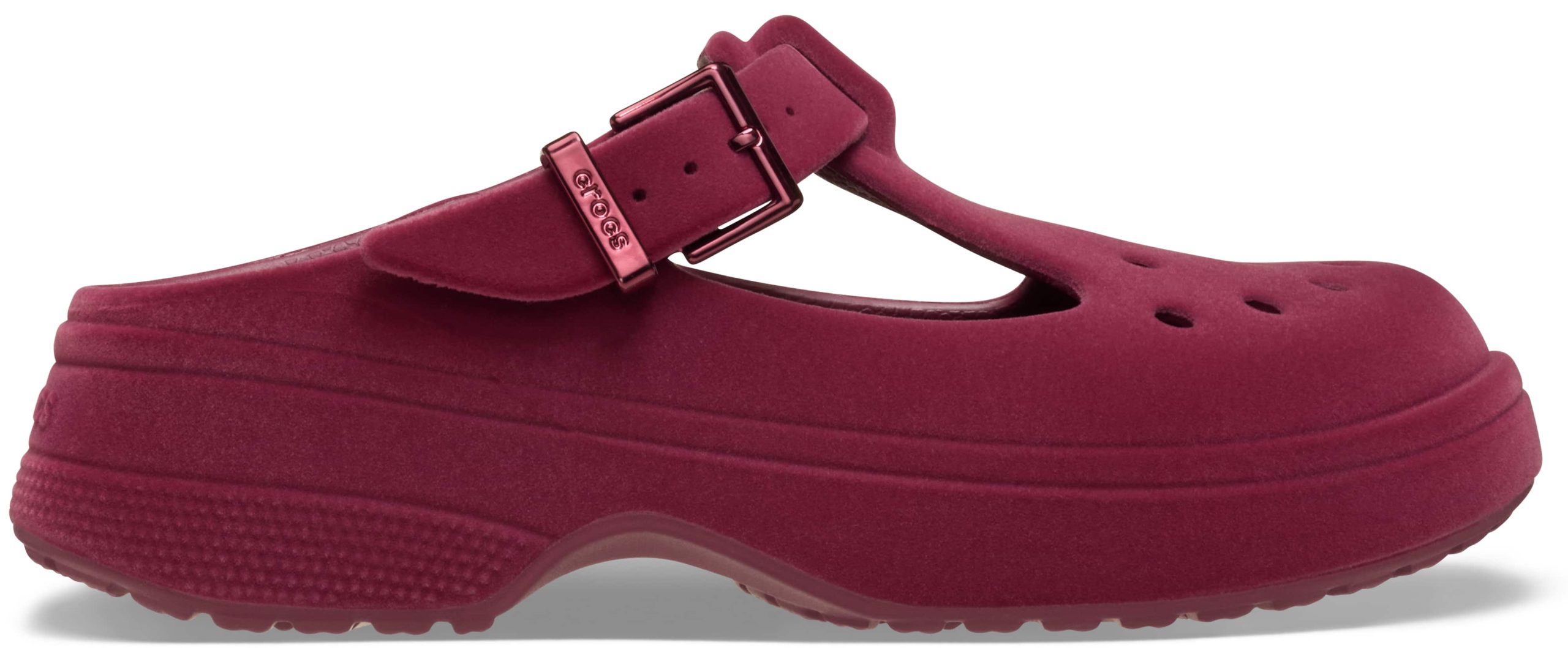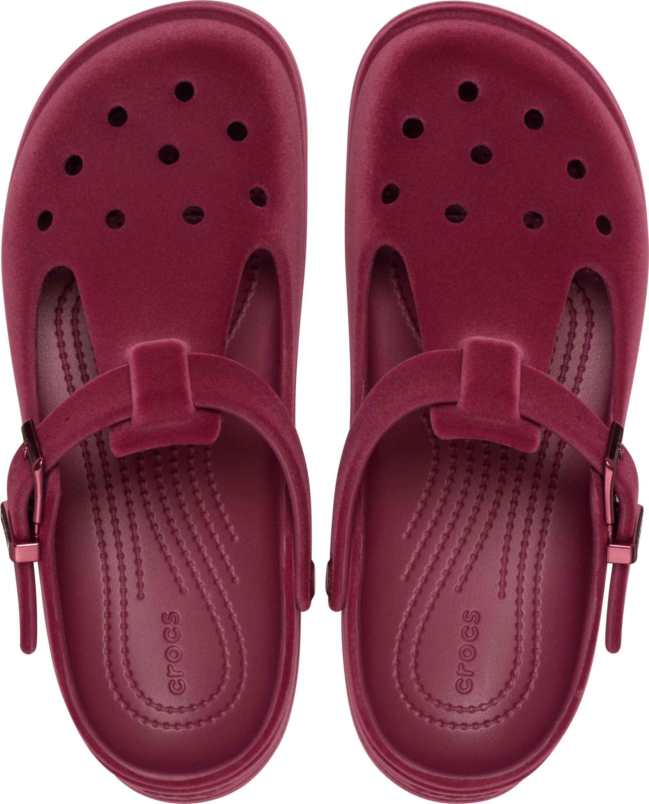 Mary Janes are the “it” shoe to have, and you can now enjoy the benefits you love of the Classic Clog in a Mary Jane style. The Classic Mary Jane features the fashionable Mary Jane styling and a slight platform heel, plus a pivotable back strap, making it versatile and easy to wear. The upper holds Jibbitz™ charms, so you can personalize and show off your personality. And this version features a unique finish that mimics velvet. Feminine, trend-right styling combines with Iconic Crocs Comfort to make the Classic Mary Jane Velvet Clog a fashionable new favorite.