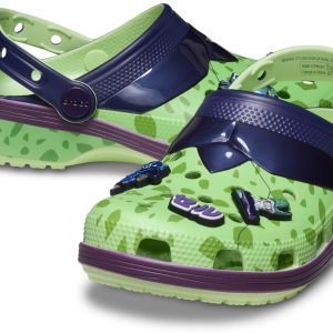 Transform your look like Cell in the new Dragon Ball Z Cell Classic Clog. This villainous clog features a green speckle treatment and high-shine navy blue elements mirroring Cell’s body. Five Jibbitz™ charms are included featuring his various forms and a Red Ribbon Army charm. Will this be your ultimate form? Step in and find out.