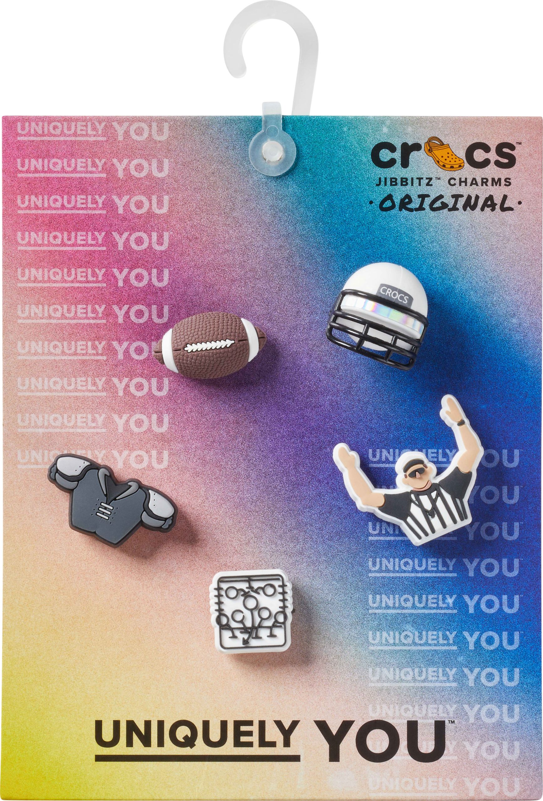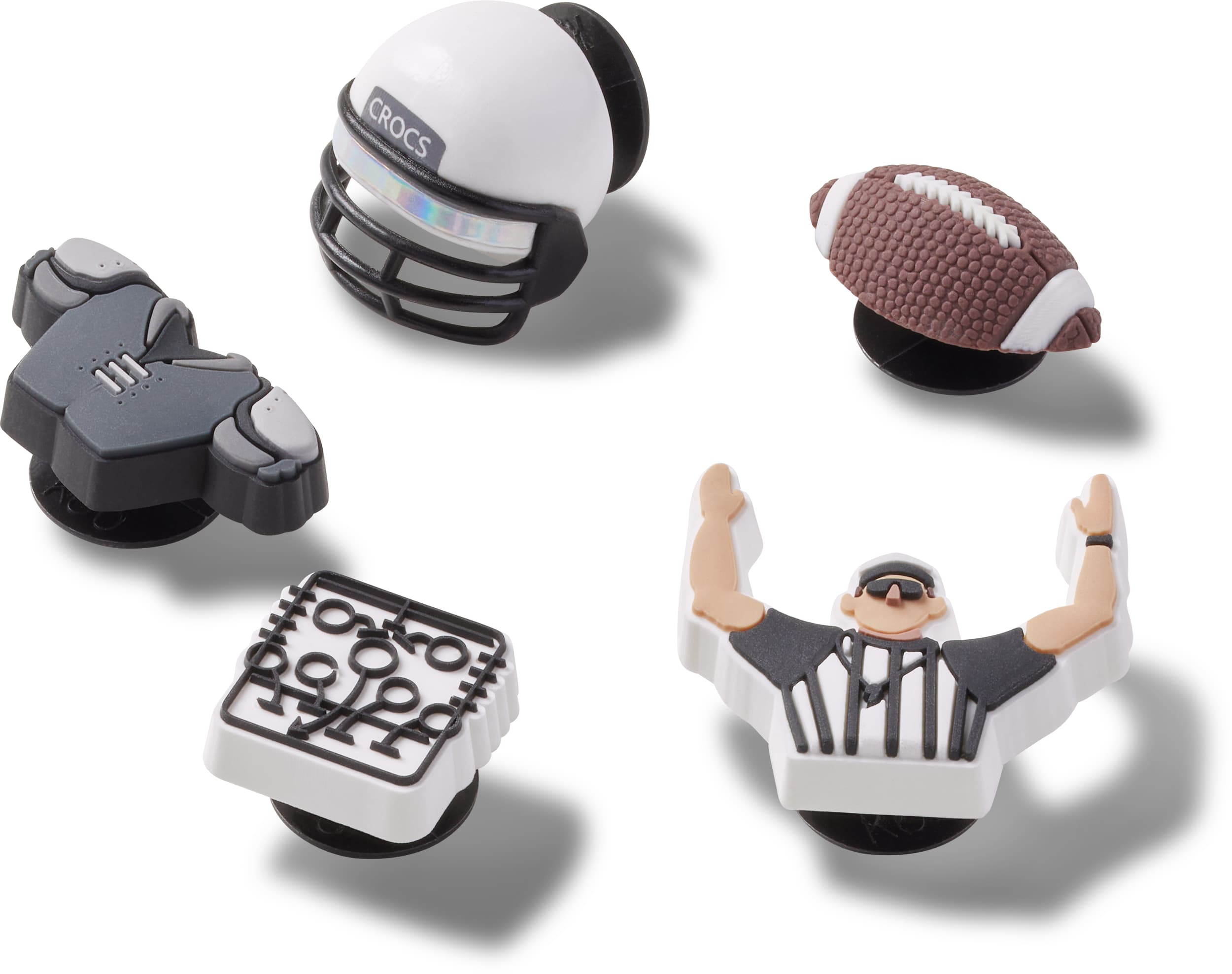 Pop some personality into your shoes with these Football Team 5 Pack Jibbitz™ charms. They’re the perfect addition to your favorite pairs of clogs, slides, and more.