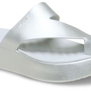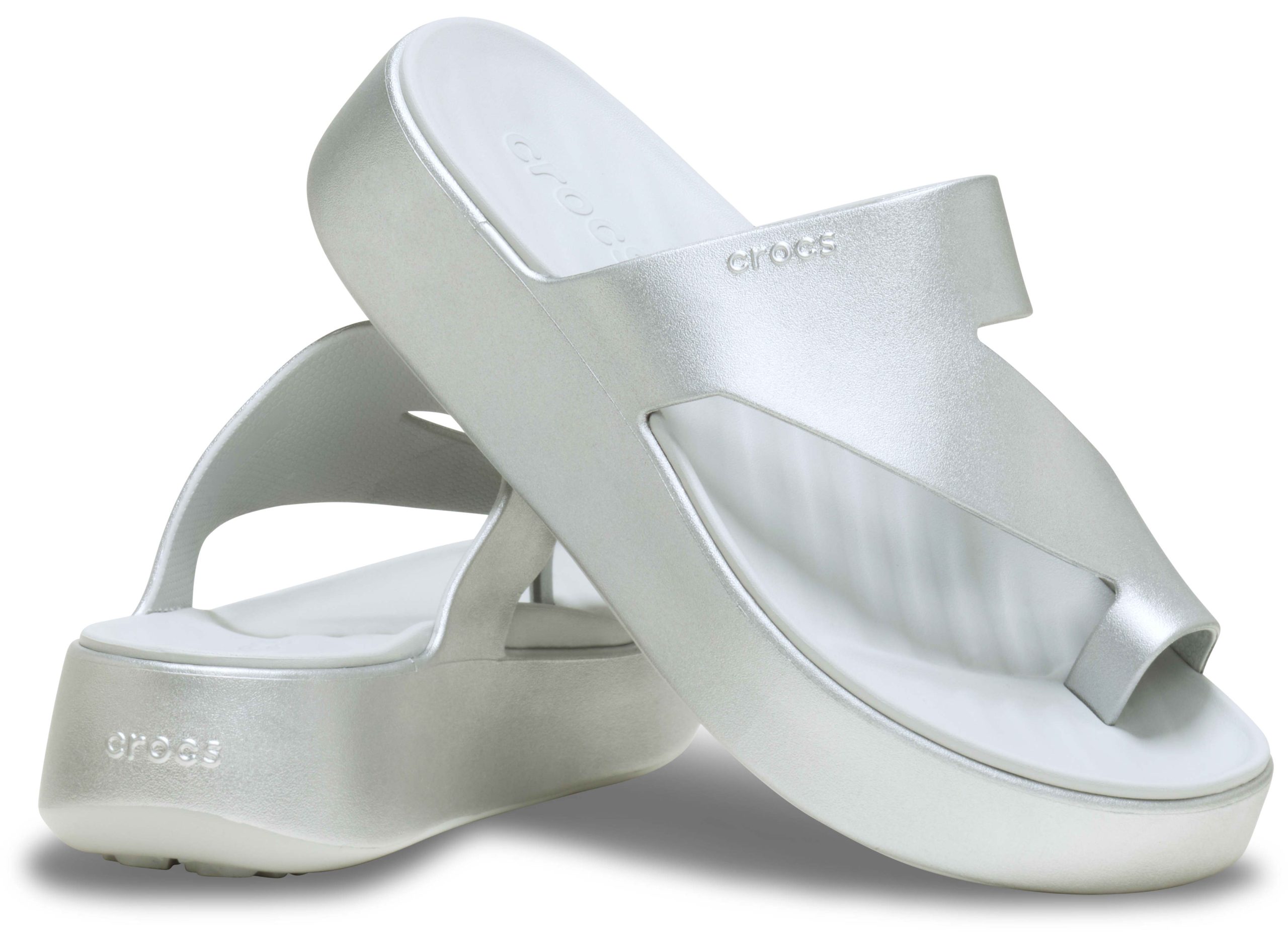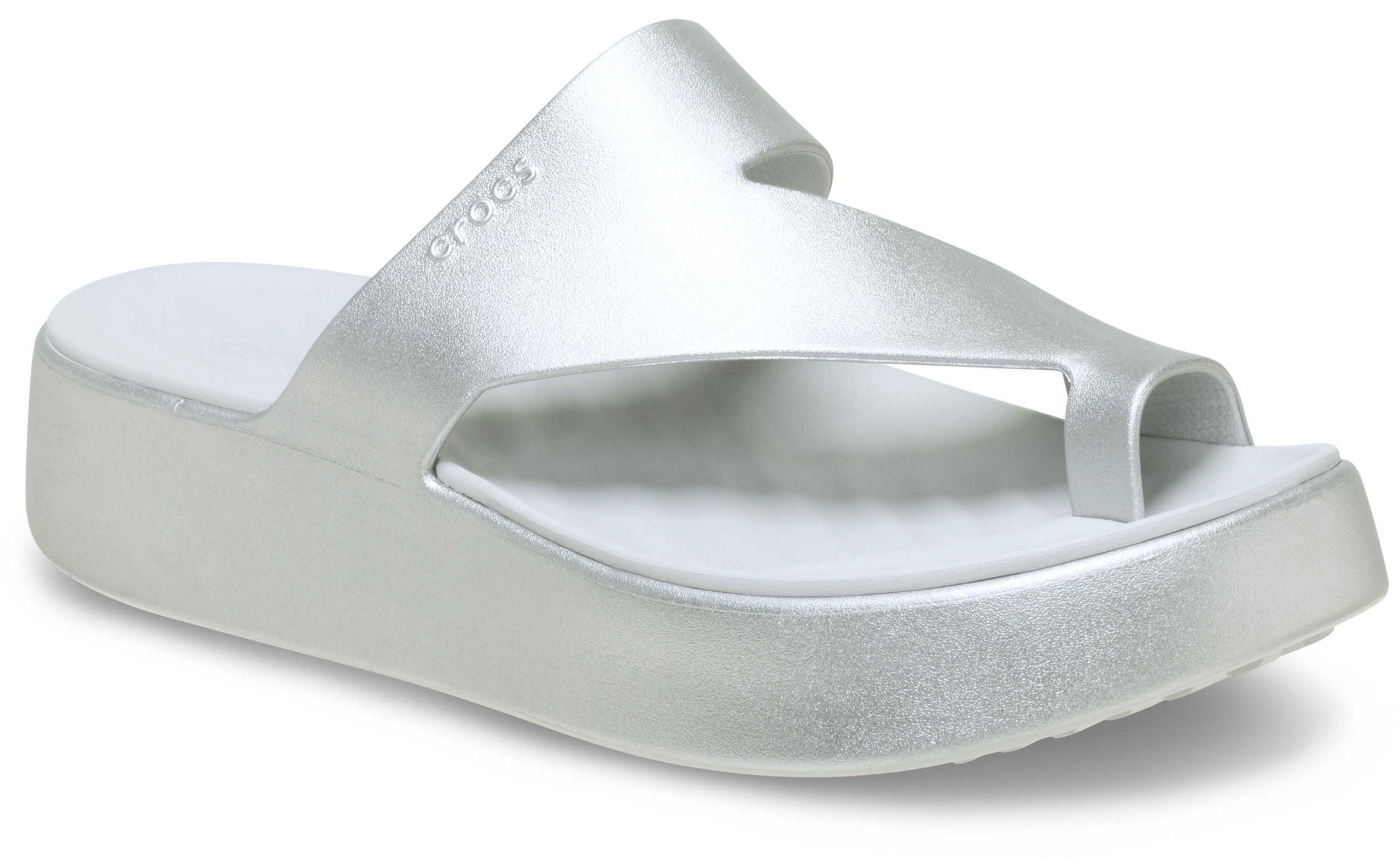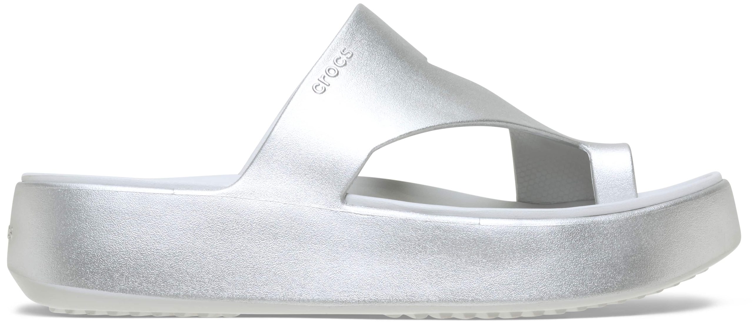 The Crocs Getaway Collection with new Free Feel Technology™ introduces our most seamless comfort innovation yet. The soft, flexible Free Feel Technology™ upper feels like nothing at all, floating on top of your foot and moving with you without restriction. With a variety of heights and stylish silhouettes, you will have a sandal for every occasion and all your getaways! This version features a stylish metallic treatment. Once you step in, you will never want to take them off.