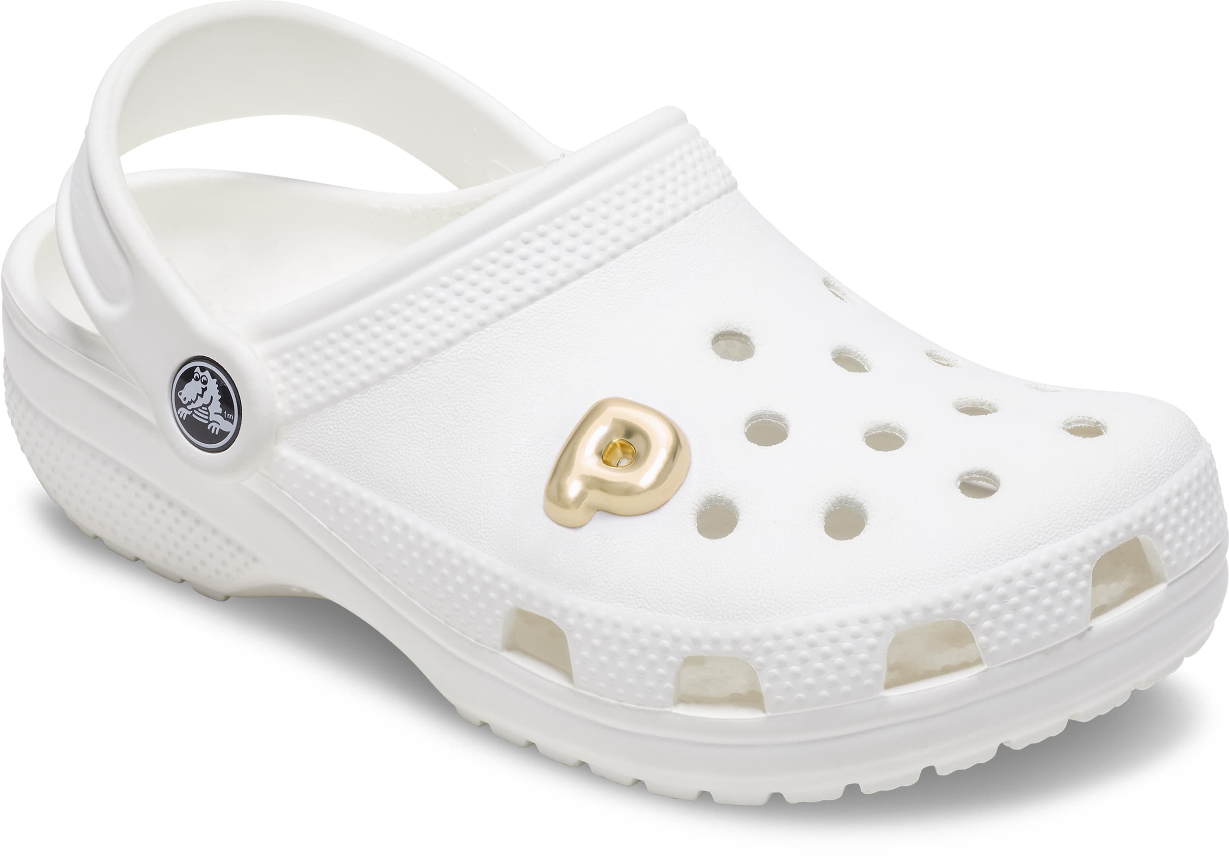 Pop some personality into your shoes with this Gold Bubble Letter P Jibbitz™ charm. It’s the perfect addition to your favorite pairs of clogs, slides, and more.