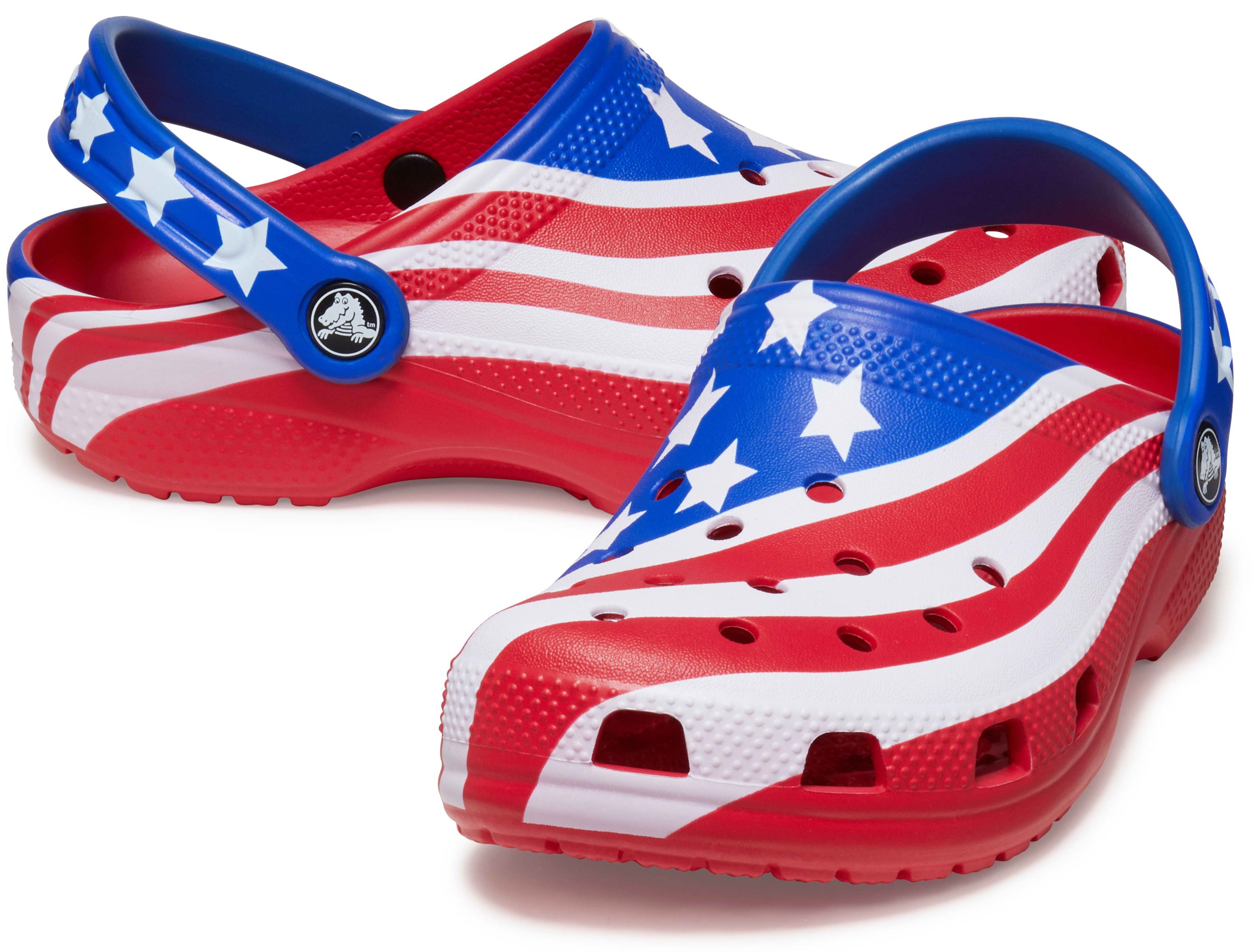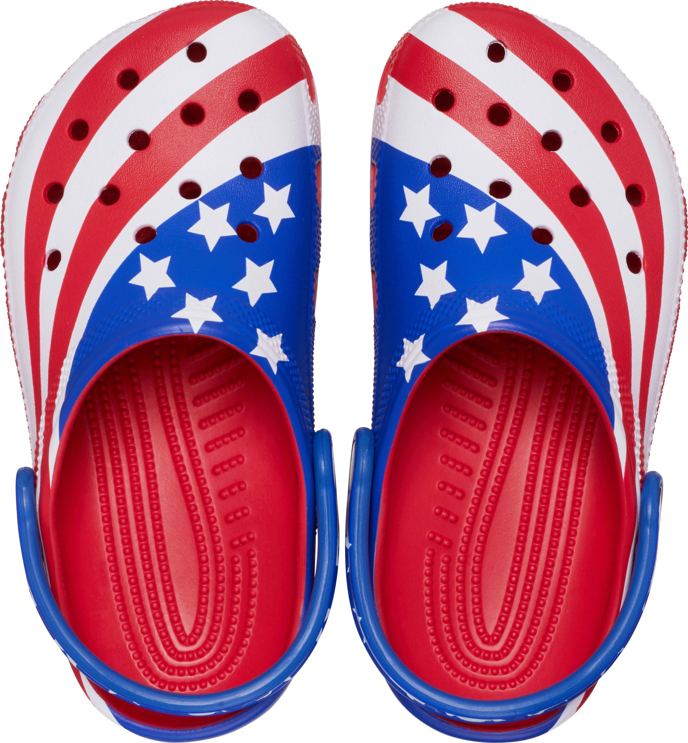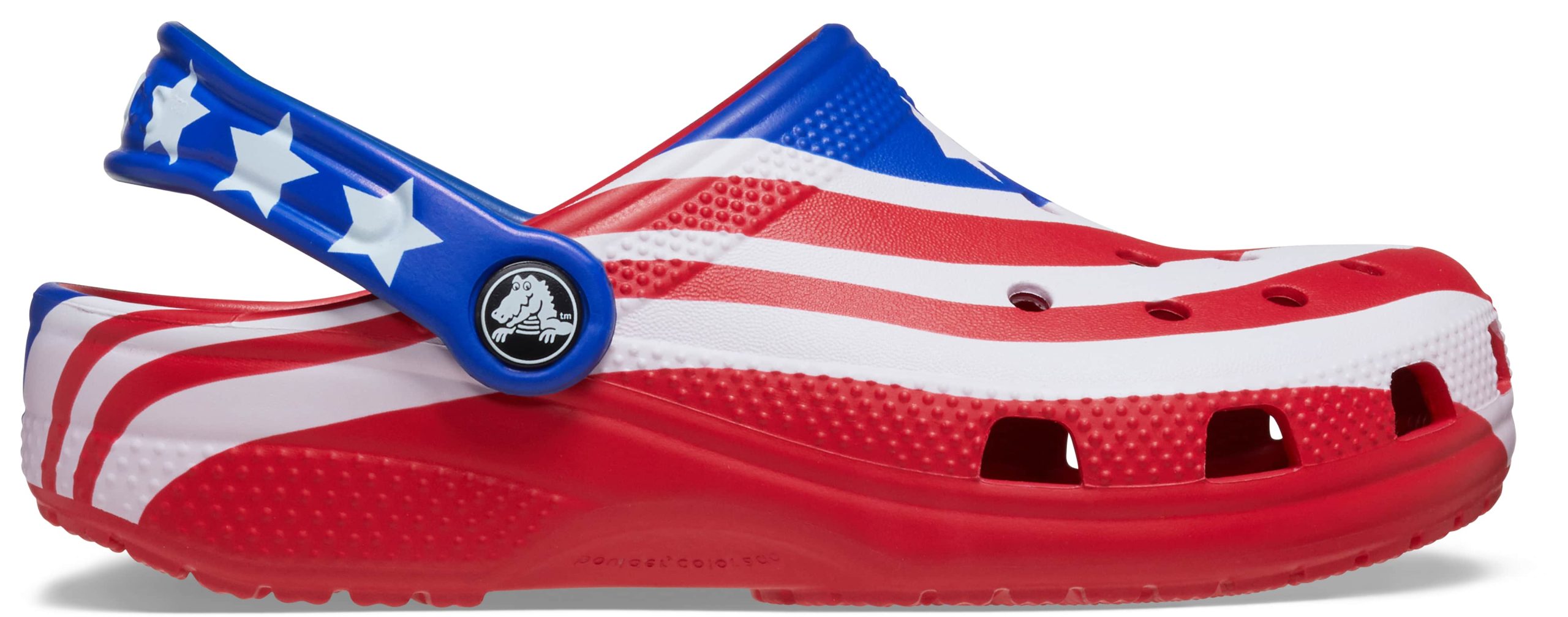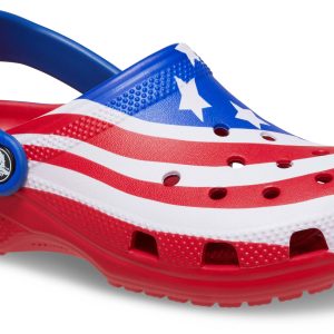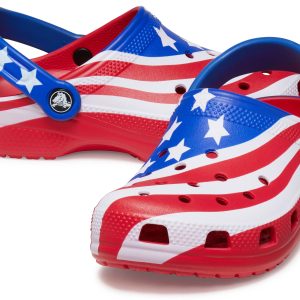 The iconic clog that kids and parents love gets a new makeover in the patriotic spirit of the American flag! The right clog sports the famous stripes, and the left shows off the traditional stars. While loving the USA is a year-round feeling, it’s a good time to consider stocking up for America’s most prideful holidays, including Independence Day, Veterans Day and Memorial Day. Makes a great gift!
