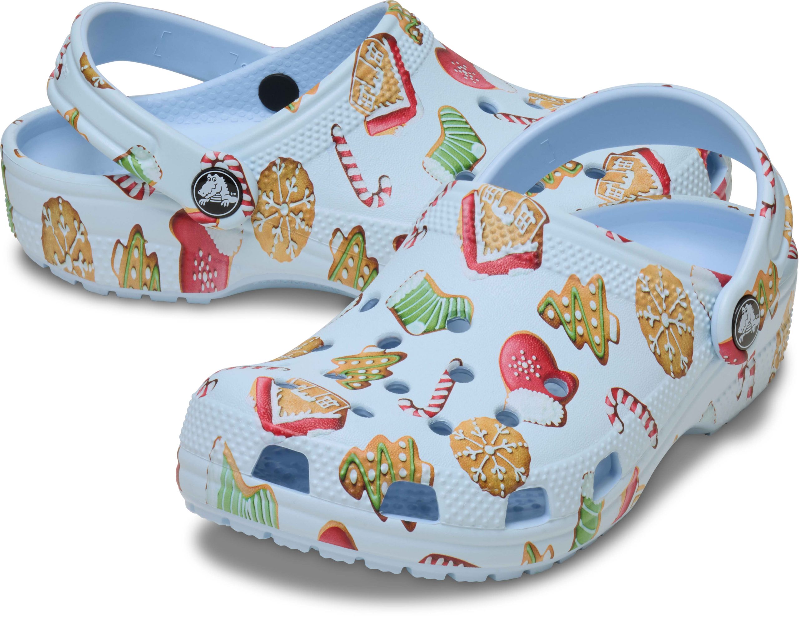A fun holiday cookie graphic provides extra style to the iconic clog that started a comfort revolution, charmed kids everywhere and made parents fall in love with their easy-to-wear design. The cookies graphic gives these clogs playful holiday style, and Croslite™ foam construction keeps them light and easy to wear. Grounded in comfort, spiked with personality.