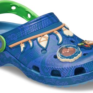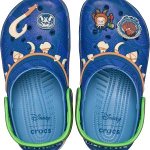 Let your little adventurer tell their story with the new Kids’ Disney Moana Maui Classic Clog. Beyond the Magical Hook, these clogs feature Jibbitz™ charms including the feared Kakamora and the trickster himself. Thanks to the light, durable Croslite™ material, journeys small and big will be done in comfort and style.