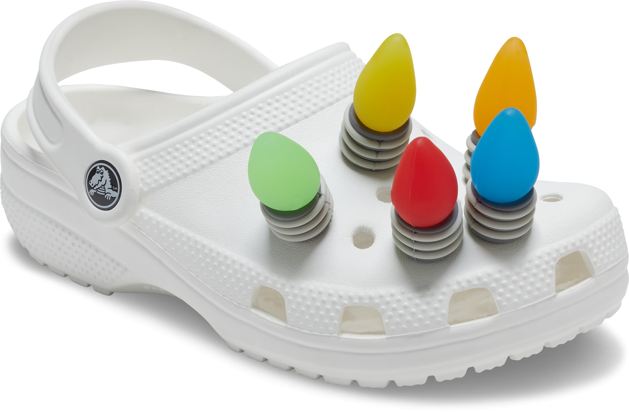 Pop some personality into your shoes with these LED Holiday Lights 5 Pack Jibbitz™ charms. They’re the perfect addition to your favorite pairs of clogs, slides, and more.
