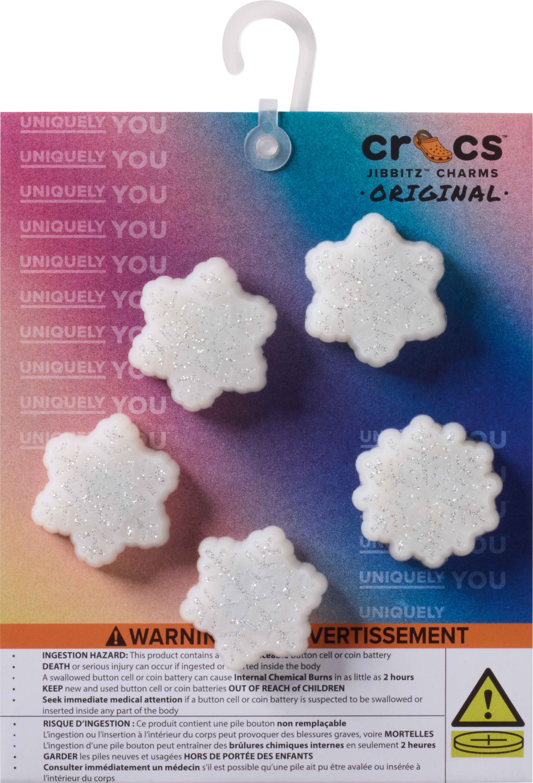 Pop some personality into your shoes with these LED Winter Night Snowflake 5 Pack Jibbitz™ charms. They’re the perfect addition to your favorite pairs of clogs, slides, and more.