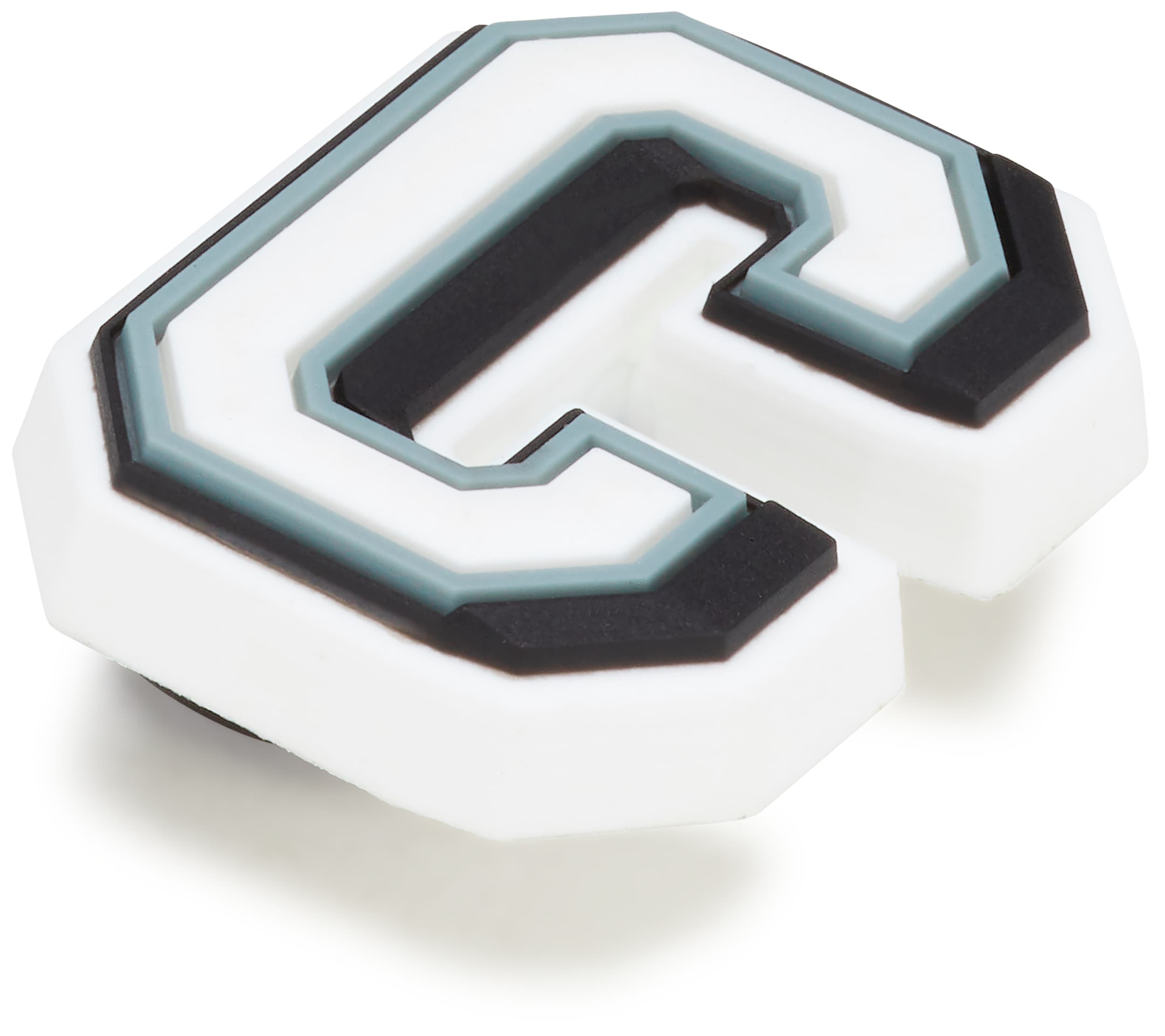 Use these varsity-style Jibbitz™ charms to spell your name or initials, show off your school or team pride, or write just about anything else! The white letter has a grey outline and a black shadow, so you can be sure that everyone will see these classic letters.