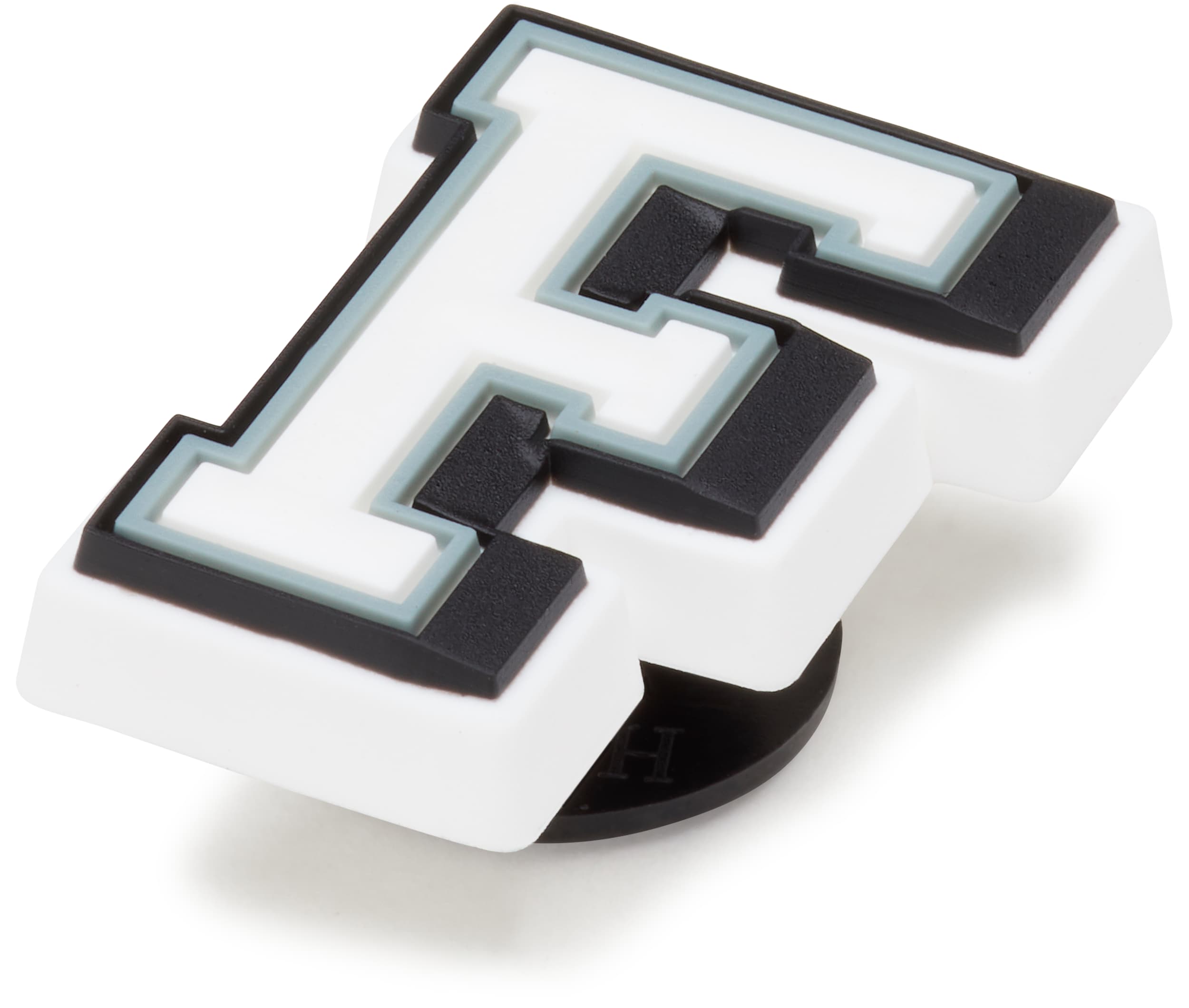 Use these varsity-style Jibbitz™ charms to spell your name or initials, show off your school or team pride, or write just about anything else! The white letter has a grey outline and a black shadow, so you can be sure that everyone will see these classic letters.