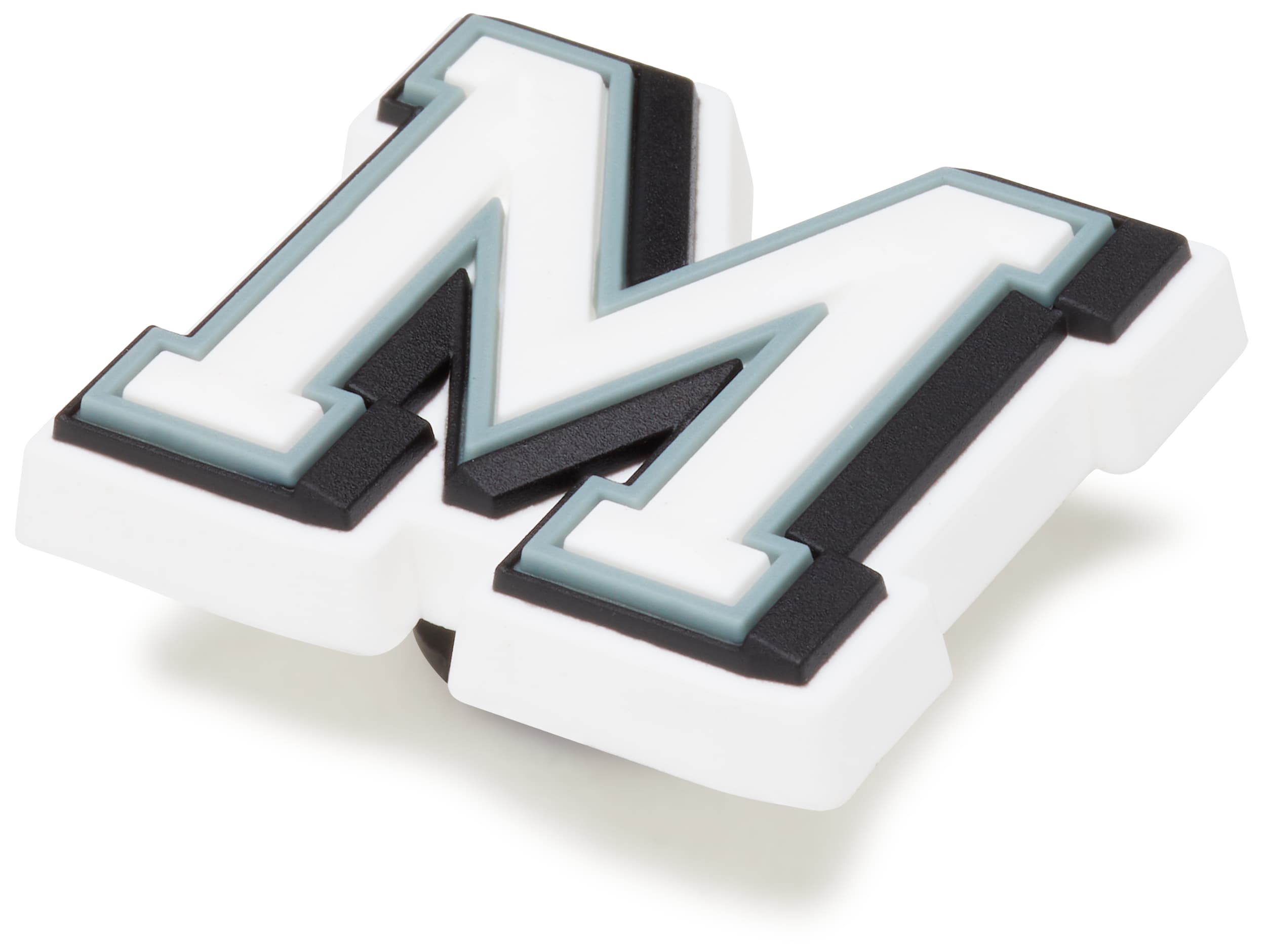 Use these varsity-style Jibbitz™ charms to spell your name or initials, show off your school or team pride, or write just about anything else! The white letter has a grey outline and a black shadow, so you can be sure that everyone will see these classic letters.
