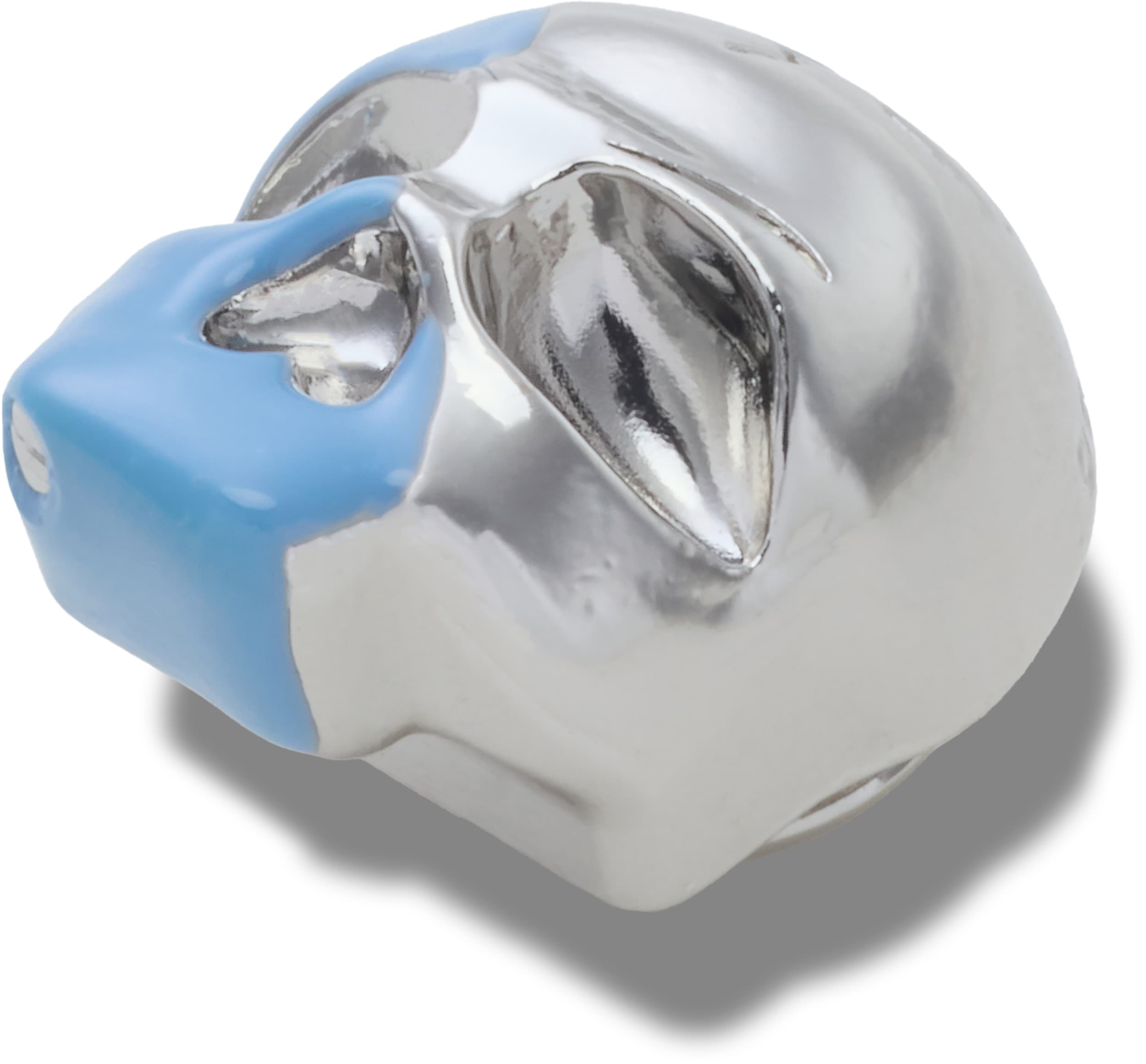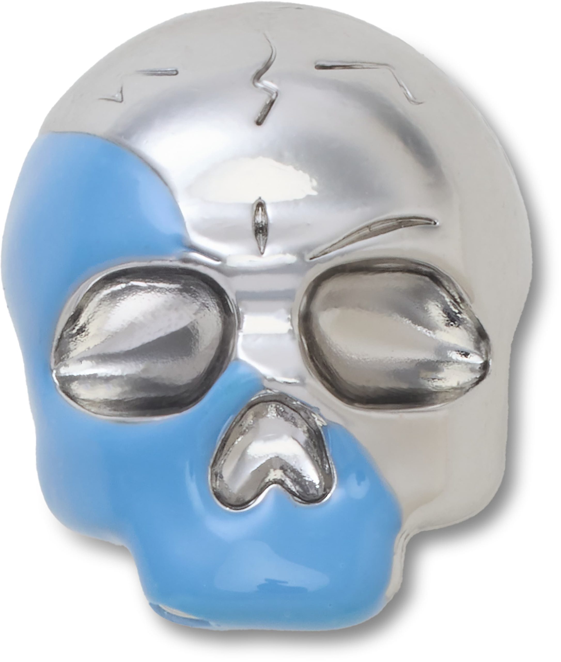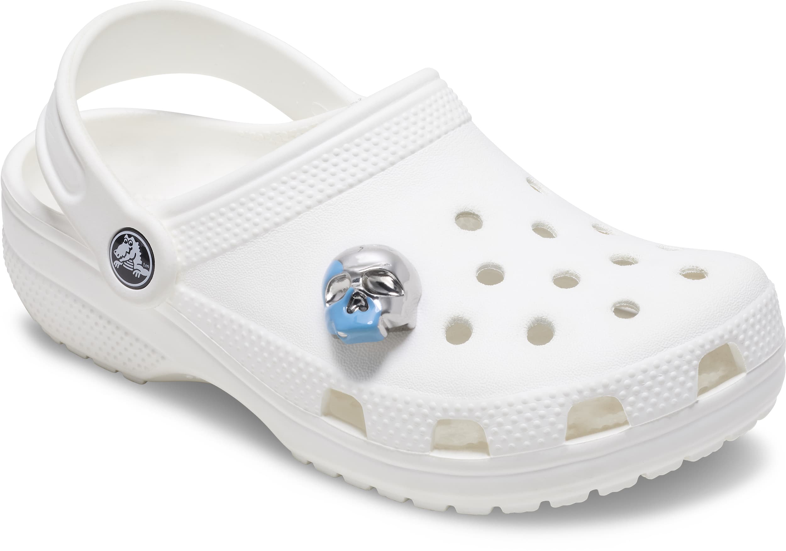 Pop some personality into your shoes with this Silver and Blue Enamel Skull Jibbitz™ charm. It’s the perfect addition to your favorite pairs of clogs, slides, and more.
