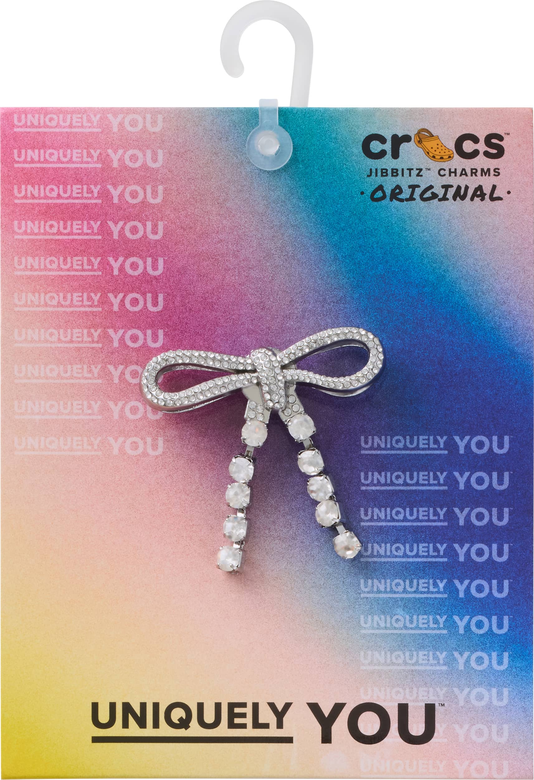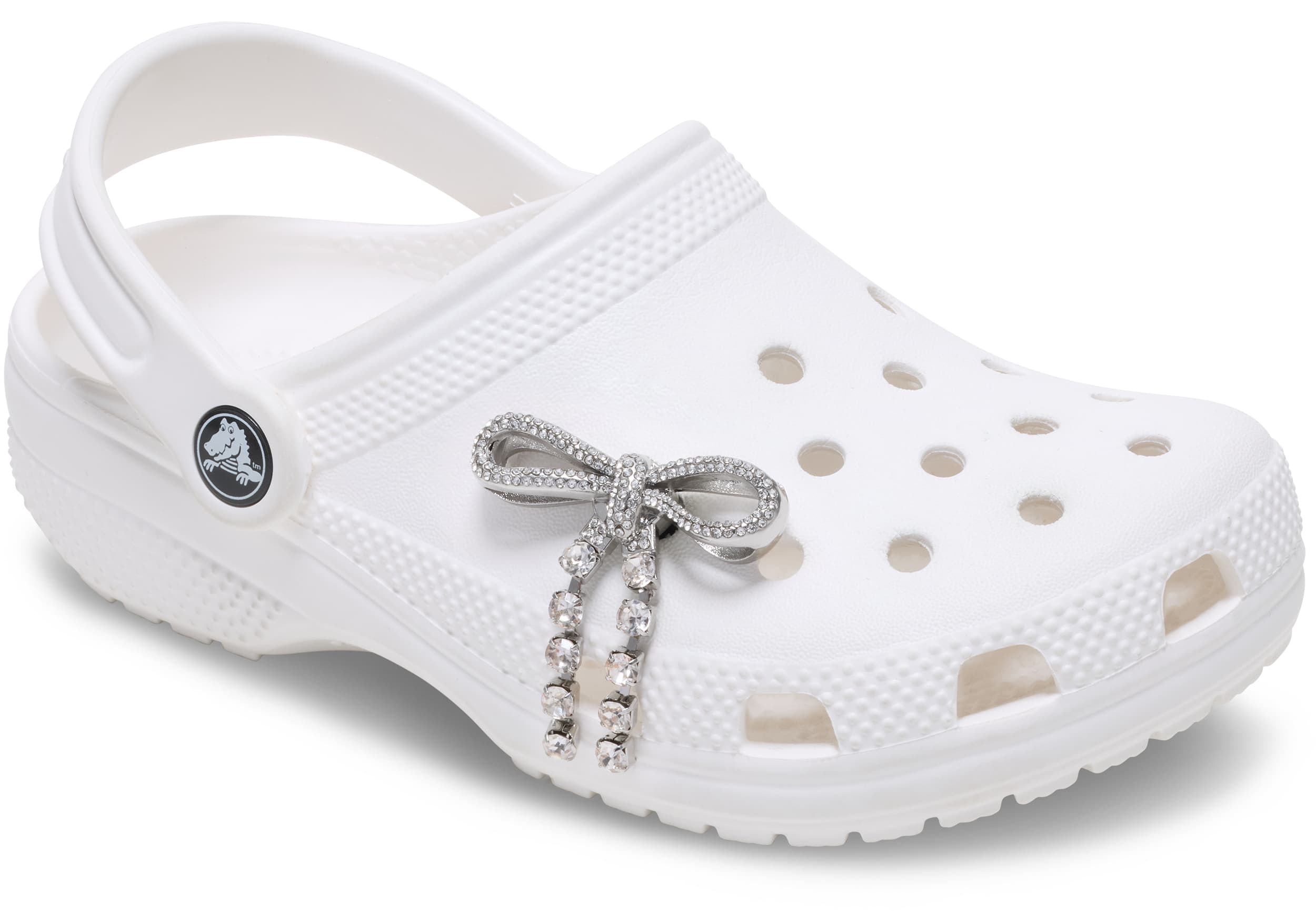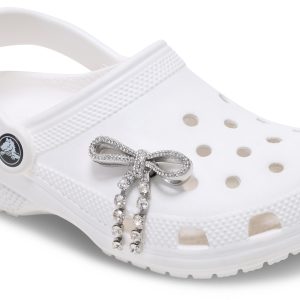 Pop some personality into your shoes with this Silver Gem Bow Jibbitz™ charm. It’s the perfect addition to your favorite pairs of clogs, slides, and more.