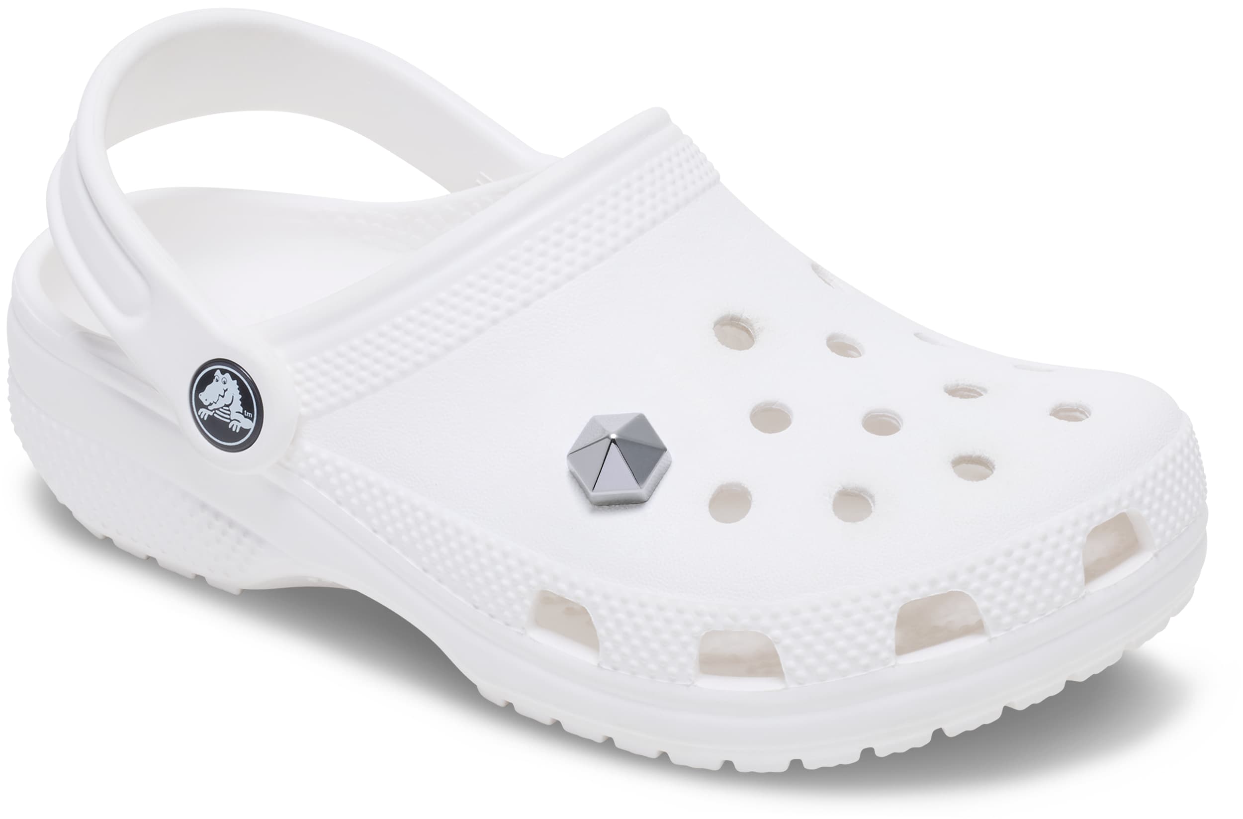 Pop some personality into your shoes with this Silver Hexagon Stud Jibbitz™ charm. It’s the perfect addition to your favorite pairs of clogs, slides, and more.