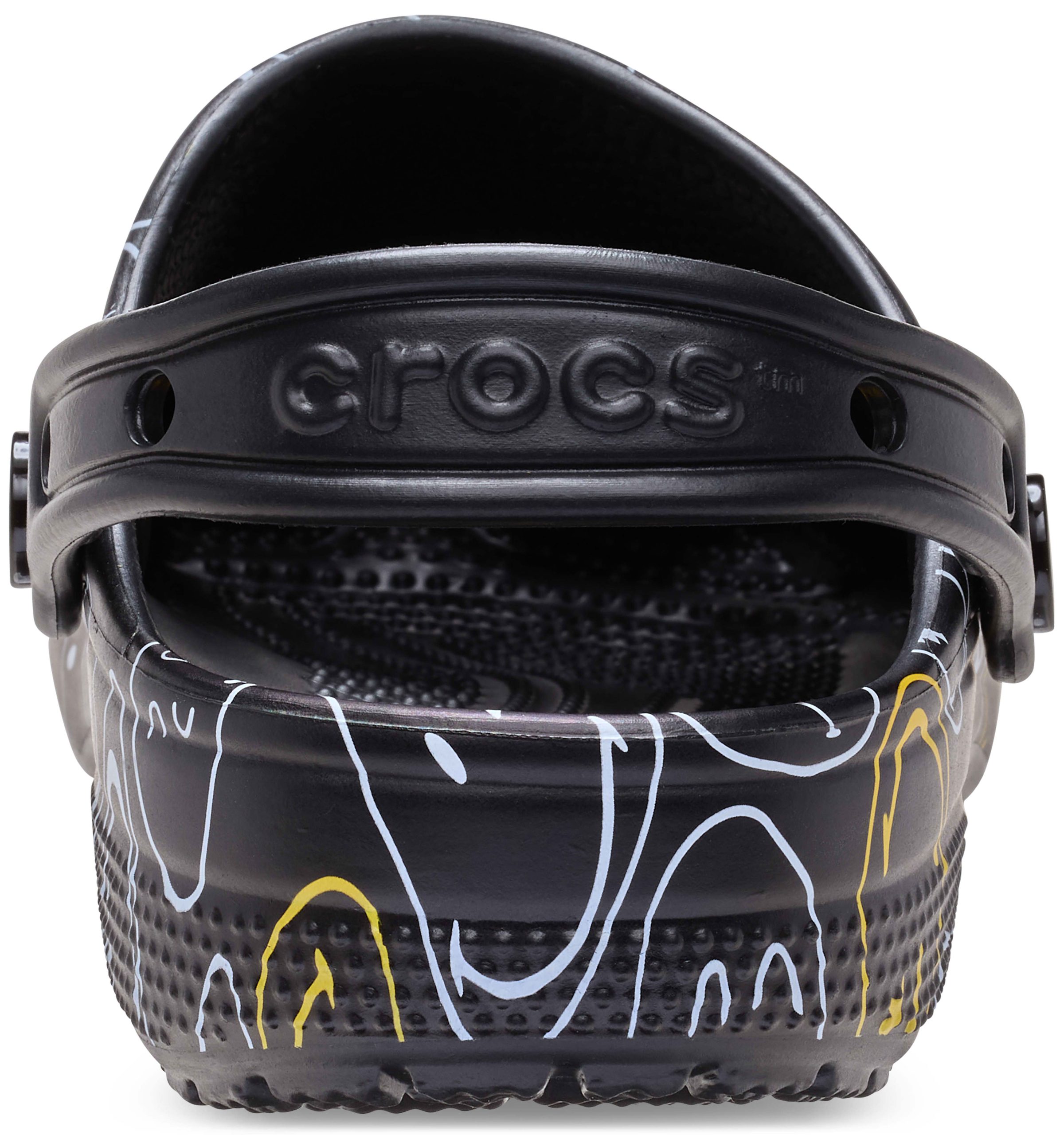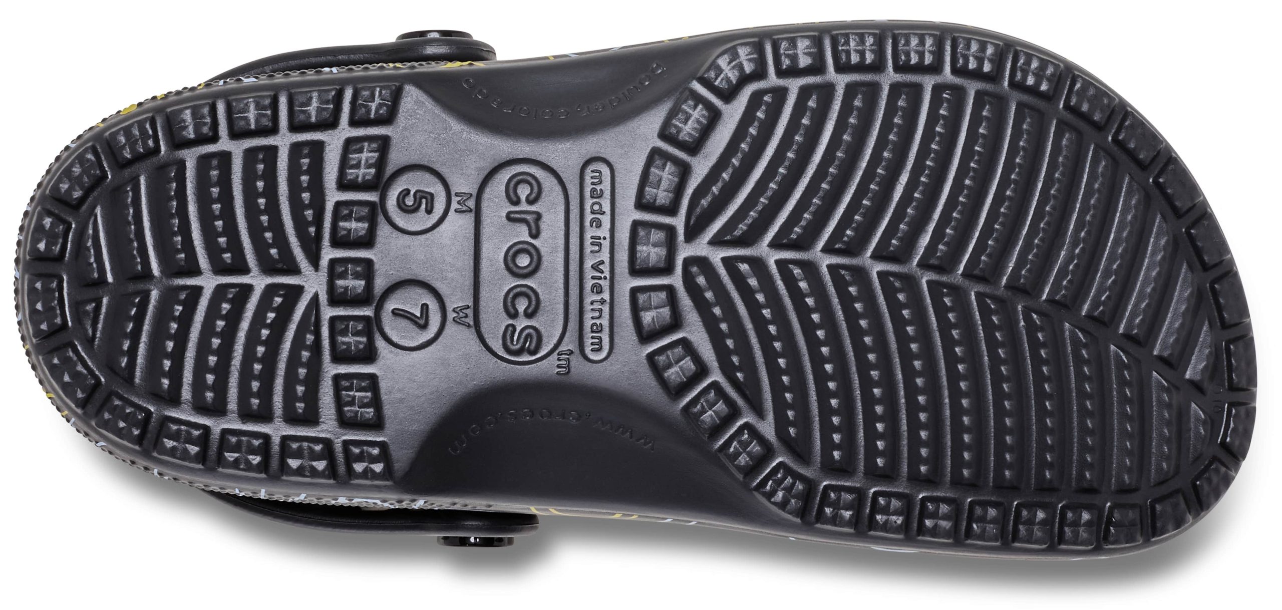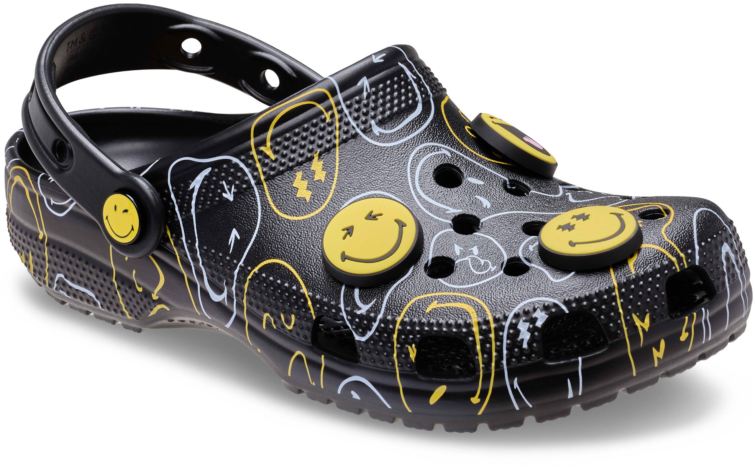 Wear your joy wherever you go in the SmileyWorld® Classic Clog, a playful pair that will have you grinning ear to ear. A comfy Croslite™ sole supports an upper that features an all-over SmileyWorld graphic print and comes pre-loaded with a fun collection of Jibbitz™ charms. Additional room on each shoe allows you to add even more personalization depending on your mood. Dial up the smiles in a style that’s sure to be your new favorite.