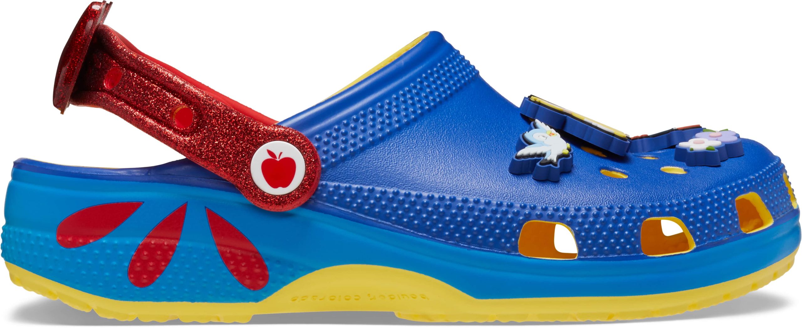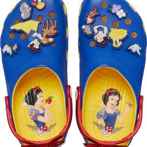 Childhood dreams and fairy-tale scenes come to life in the Snow White Classic Clog. Inspired by Snow White’s iconic red, yellow, and blue dress, these clogs are made to make you feel like a real-life princess.