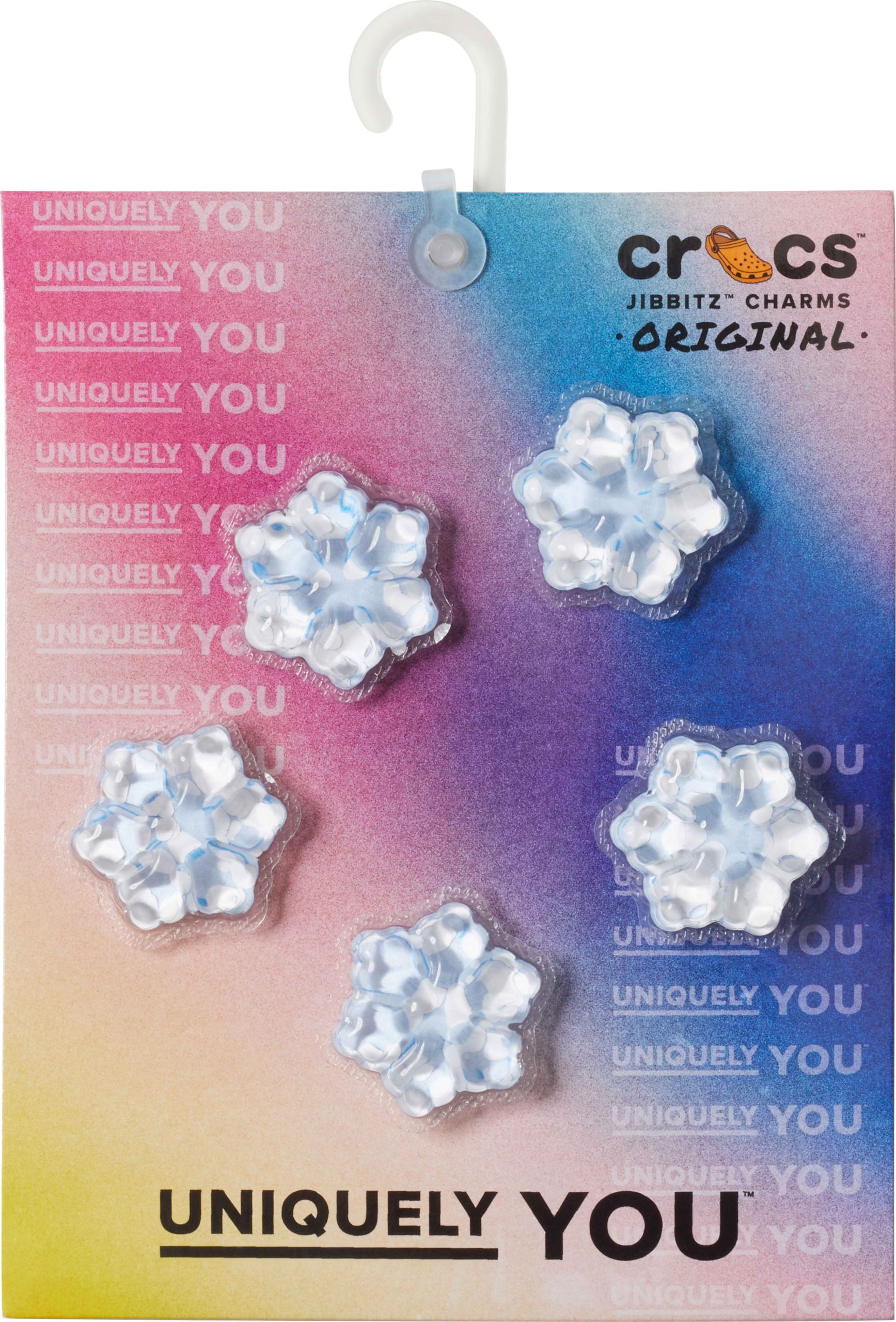 Pop some personality into your shoes with these Squish Snow Flake 5 Pack Jibbitz™ charms. They’re the perfect addition to your favorite pairs of clogs, slides, and more.