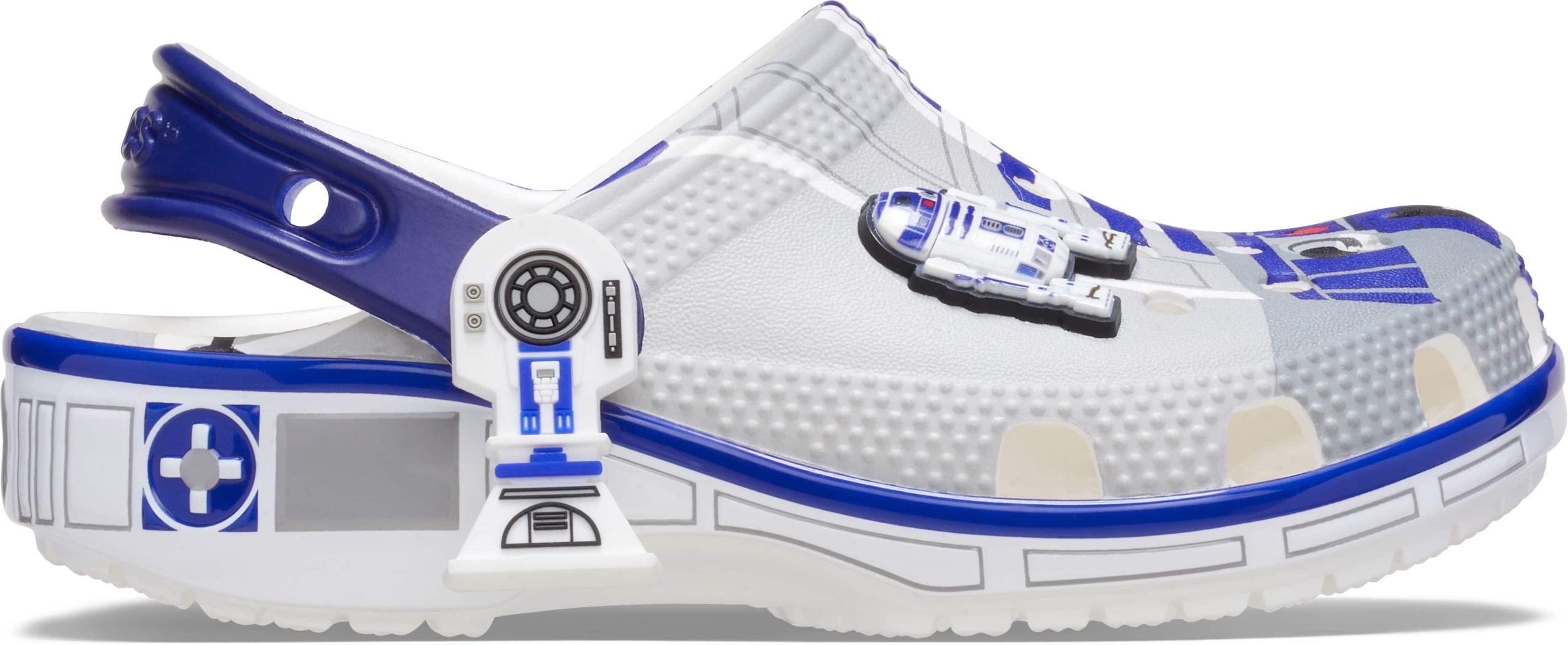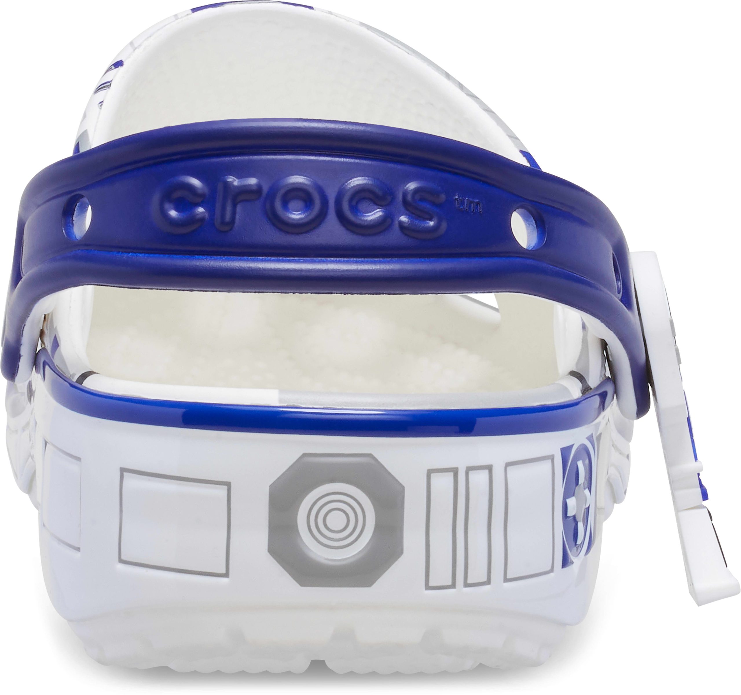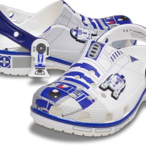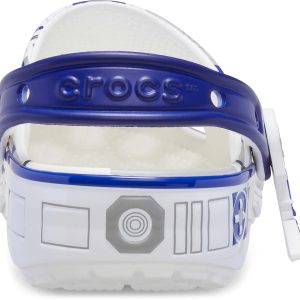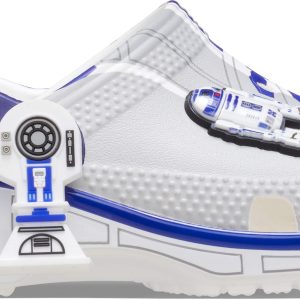 The heroic droid from the epic STAR WARS™ saga inspired this comfortable R2-D2 Classic Clog. This limited-edition design features printed droid details across the upper that embodies all the charm of R2-D2, with pivoting legs near each heel cup to complete this character-turned-clog design. This style is paired with two R2-D2 Jibbitz™ charms and plenty of space for more personalization to show off your STAR WARS™ fandom.