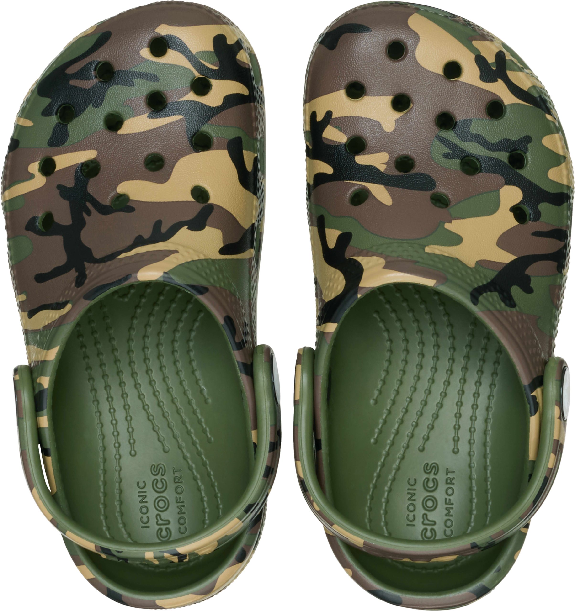 Easy on, easy off! Just like the adult Classic, the toddler version offers amazing comfort and support, thanks to the light, durable Croslite™ material and molded design. Plus, this version features a fun new camo print graphic. Grounded in comfort, spiked with personality.