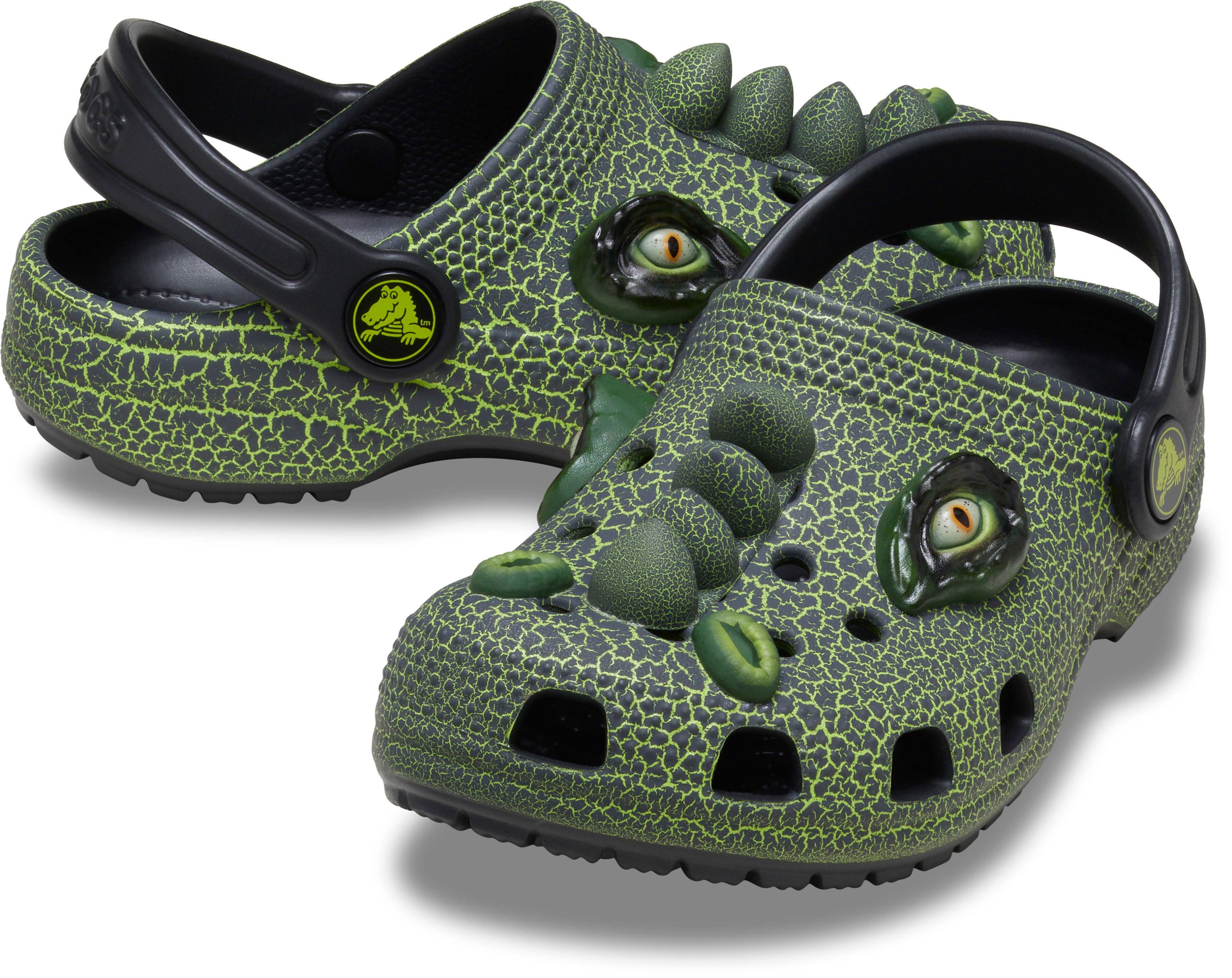 Know a little one who loves dinosaurs? Well get their ROARS ready! The scary dinosaur design on these clogs will help your little one show off their love for dinosaurs, or even allow them to pretend like they are a scary dinosaur, when they put on the I AM Scary Dino Clog. The design includes a dinosaur scale treatment, detailed dinosaur eyes, nostrils and spike embellishments. Crocs offers a variety of Classic Clogs for Kids and Toddlers that feature inspired designs to help kids express themselves and engage new friends, resulting in more fun for the little ones.