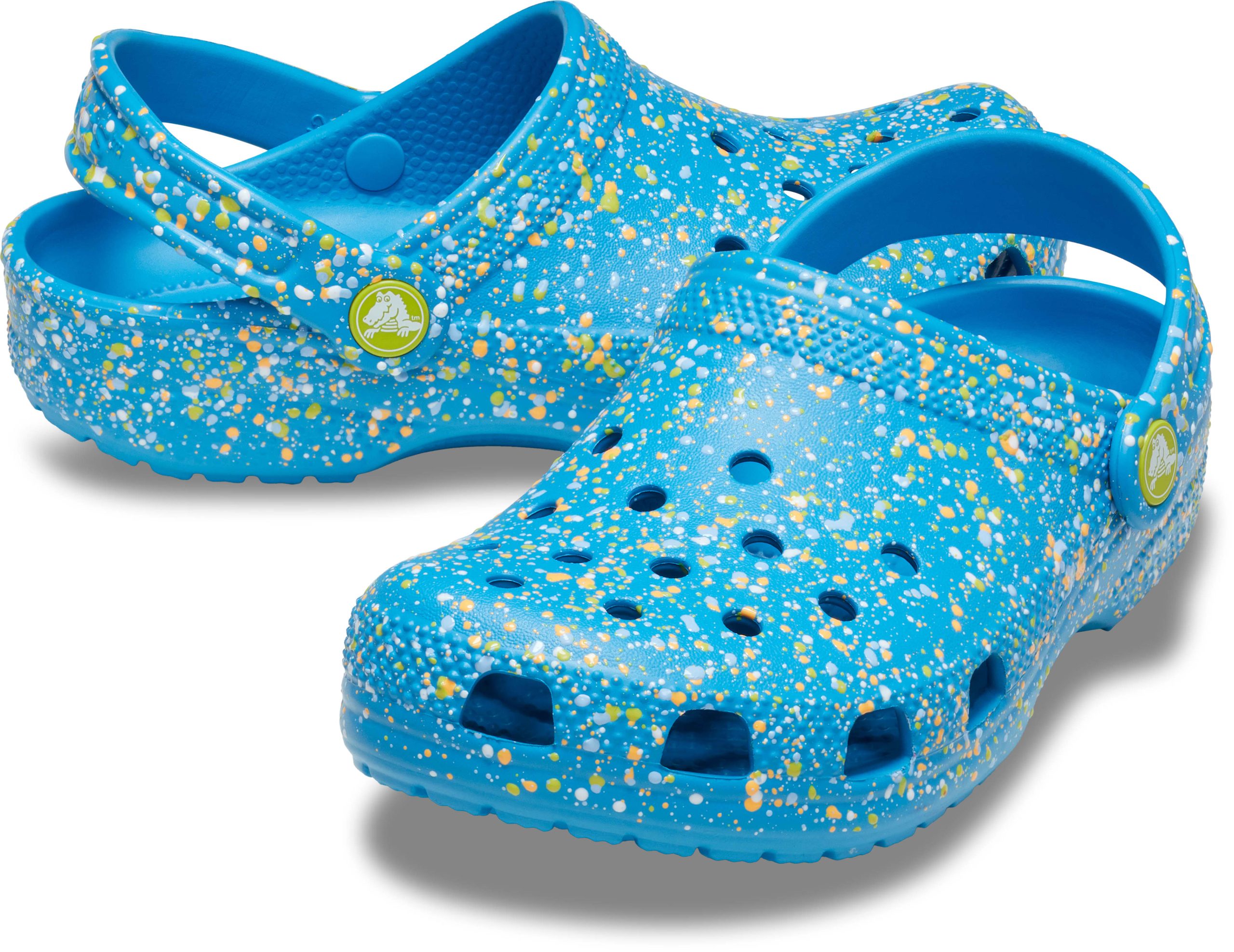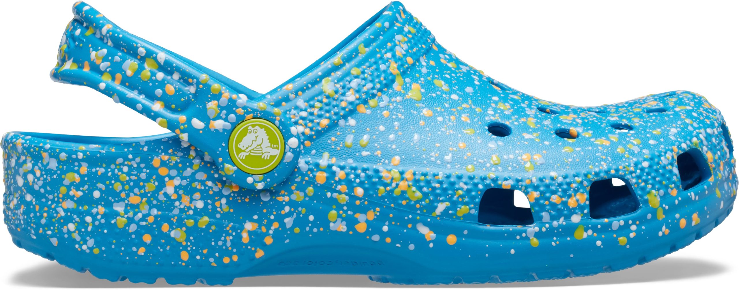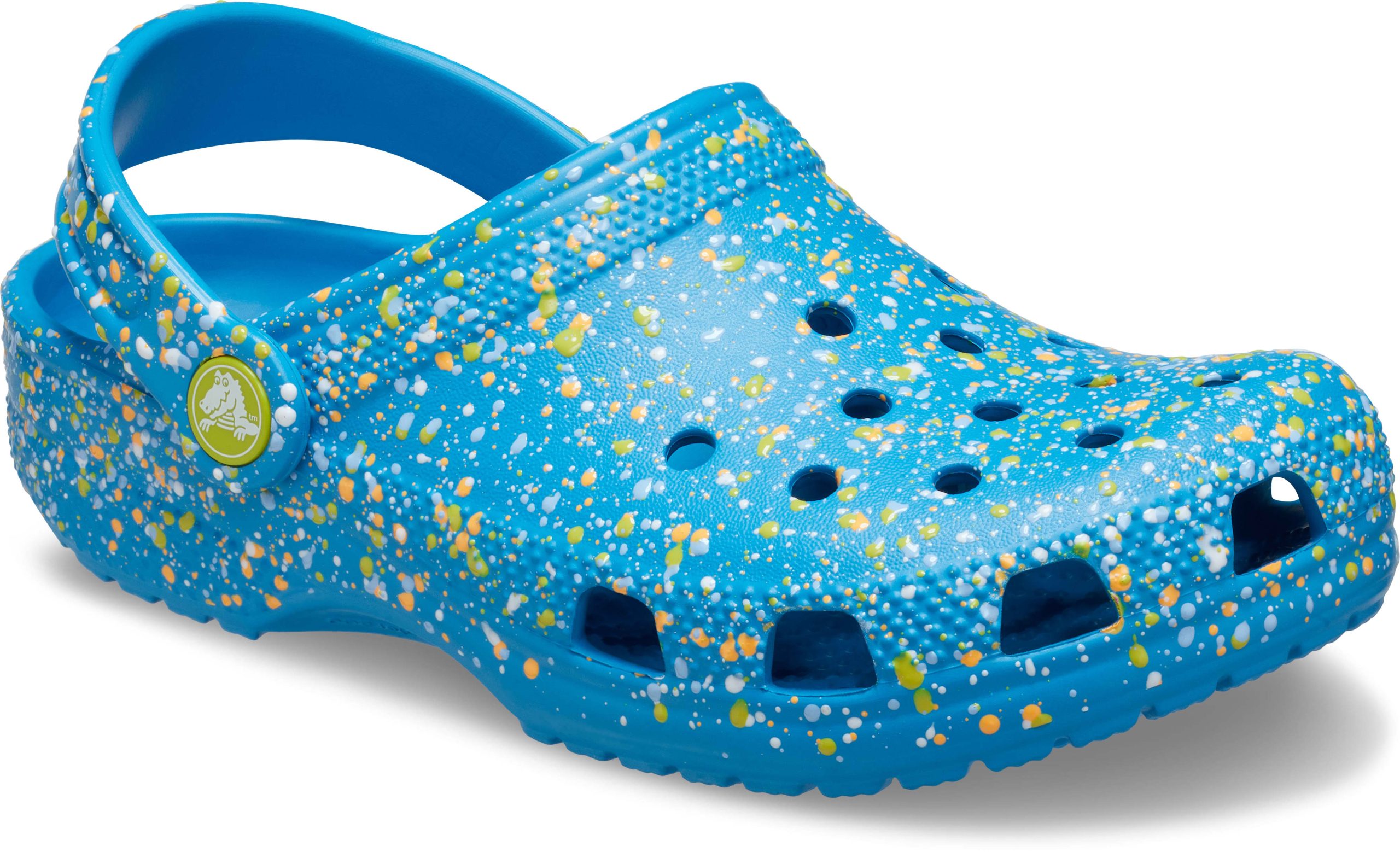 A colorful paint splatter treatment provides extra style to this version of the iconic clog. Little ones will love the fun textured paint splatters, and the Croslite™ foam construction keeps them light and easy to wear. Grounded in comfort, spiked with personality.