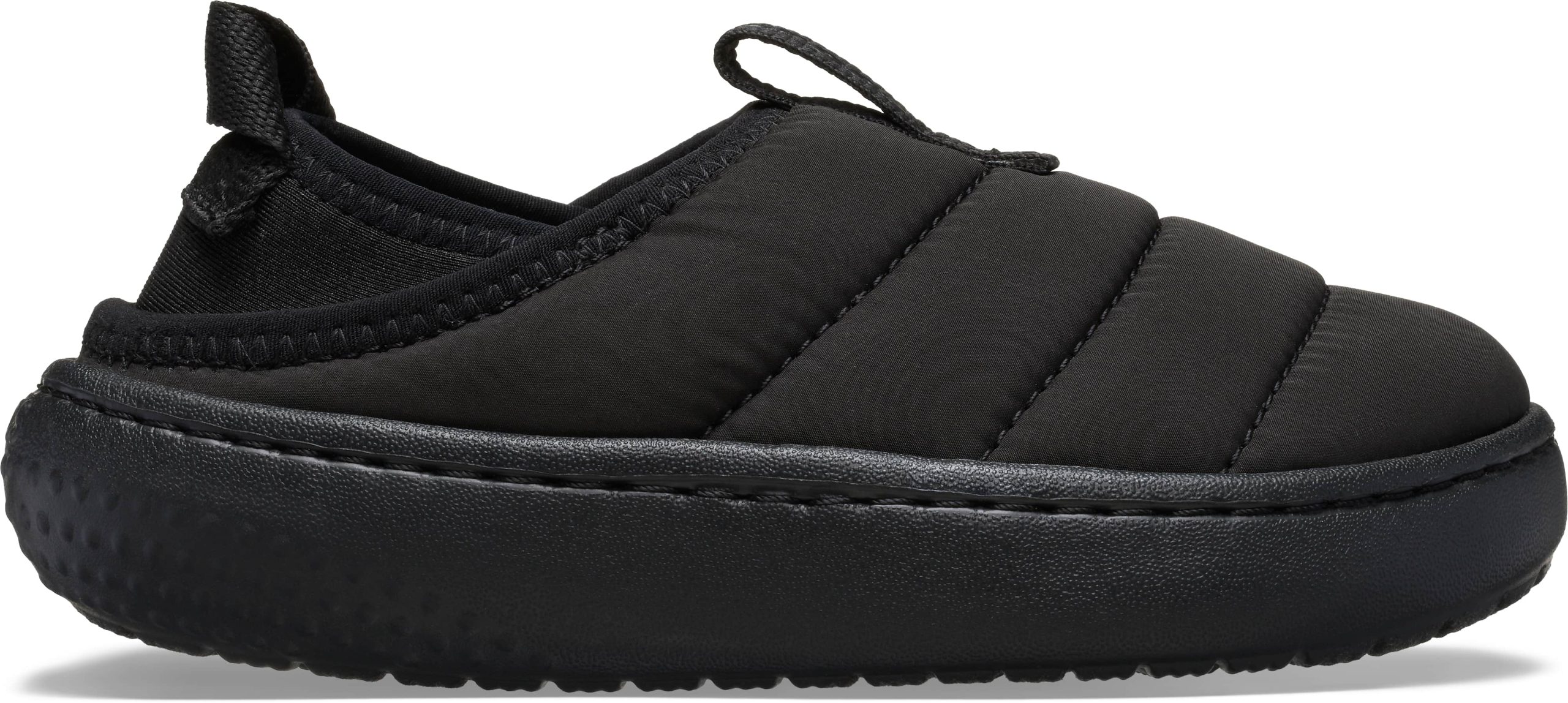 Little ones will love the warmth and style of the Toddler Classic Puff Moc. With a shape and fit derived from the Classic Clog, this moc features a nylon puff upper, microfleece lining and warm fuzzy footbed everyday cozy vibes. Plus, the collapsible heel allows it to be worn as a closed heel shoe or an open back mule, and the pull tab allows for easy on convenience. The Toddler Classic Puff Moc delivers effortless style and warmth for little ones when the weather turns cold.